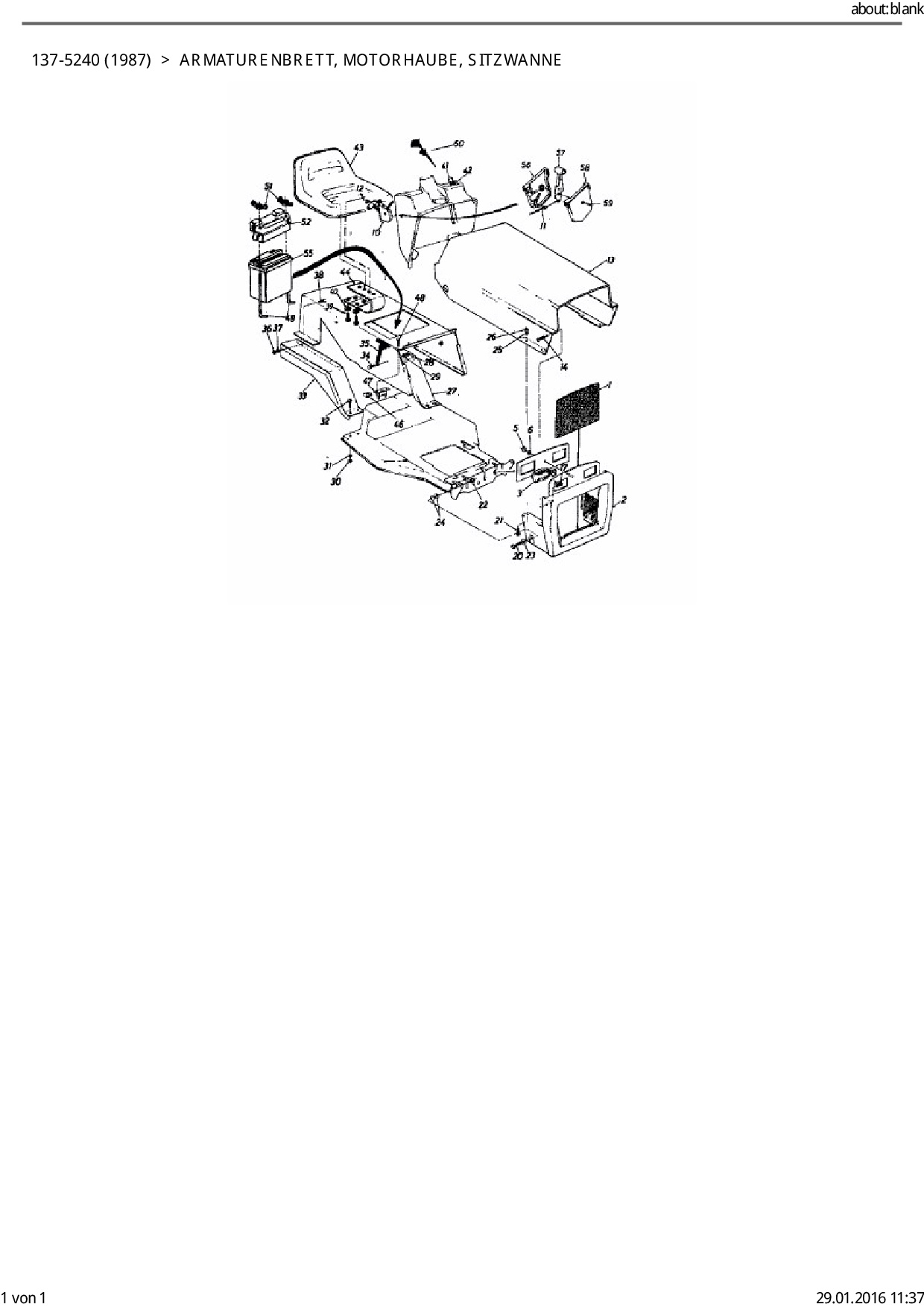Ersatzteile für Rasentraktor Columbia RD 11/660 aus der Zeichnung Armaturenbrett, Motorhaube, Sitzwanne:
