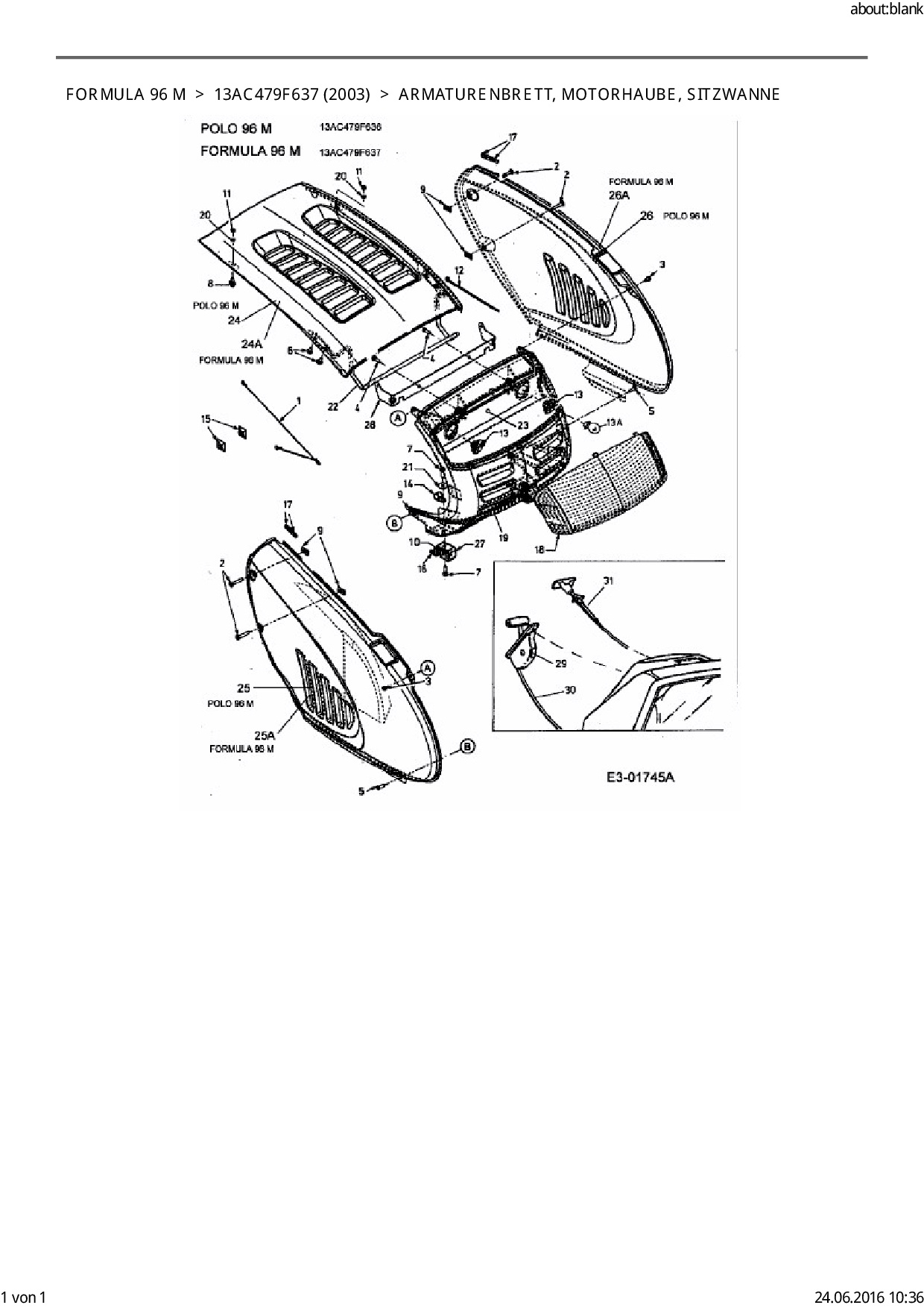 Ersatzteile für Rasentraktor EFCO Formula 96 M aus der Zeichnung Armaturenbrett, Motorhaube, Sitzwanne: