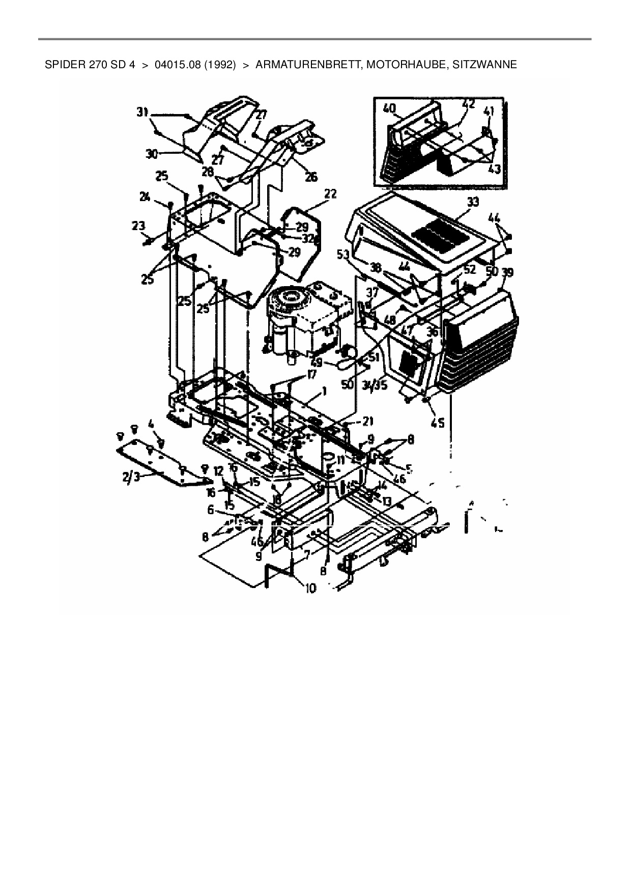 Ersatzteile für Rasentraktor Golf SPIDER 270 SD 4 aus der Zeichnung Armaturenbrett, Motorhaube, Sitzwanne: