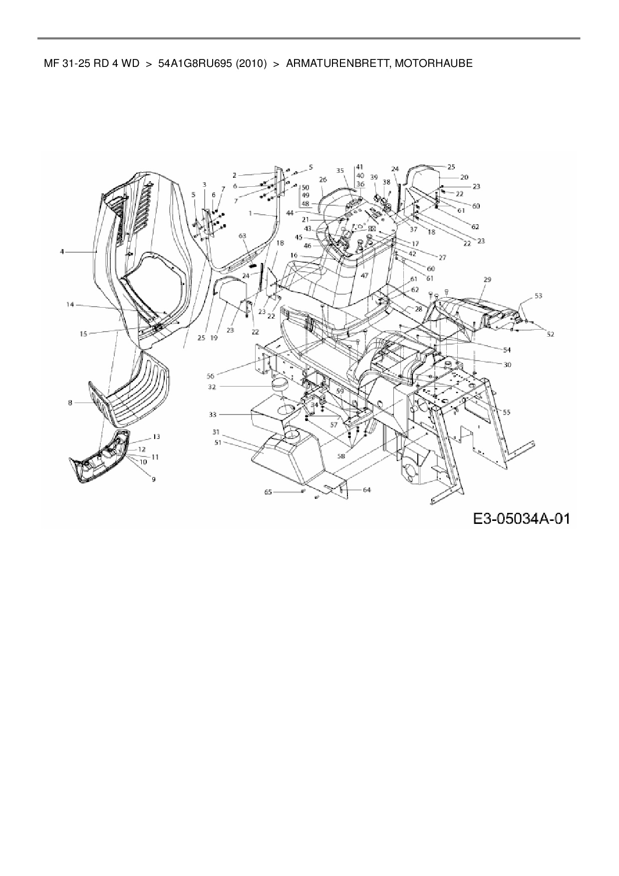 Ersatzteile für Kompakttraktor Massey Ferguson MF 31-25 RD 4 WD aus der Zeichnung Armaturenbrett, Motorhaube:
