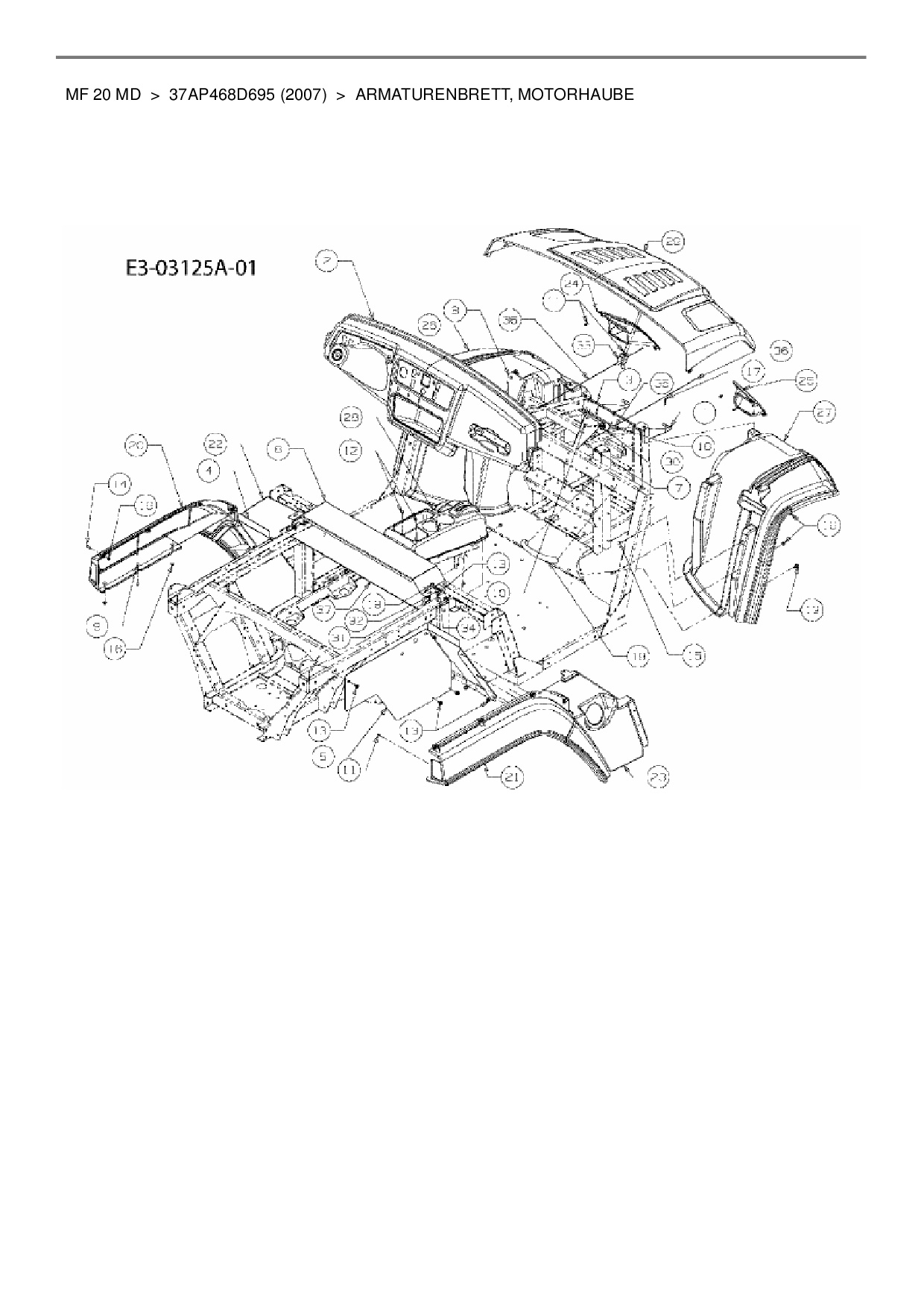 Ersatzteile für Utility Vehicle Massey Ferguson MF 20 MD aus der Zeichnung Armaturenbrett, Motorhaube: