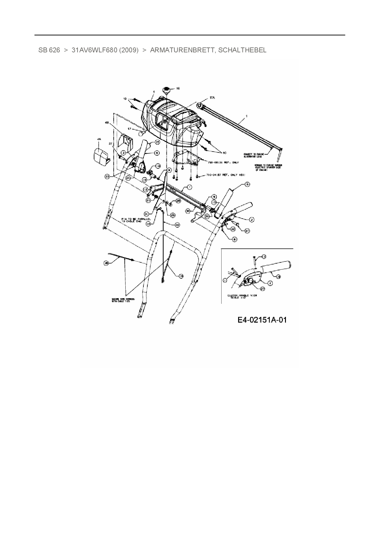 Ersatzteile für Schneefräse White SB 626 aus der Zeichnung Armaturenbrett, Schalthebel: