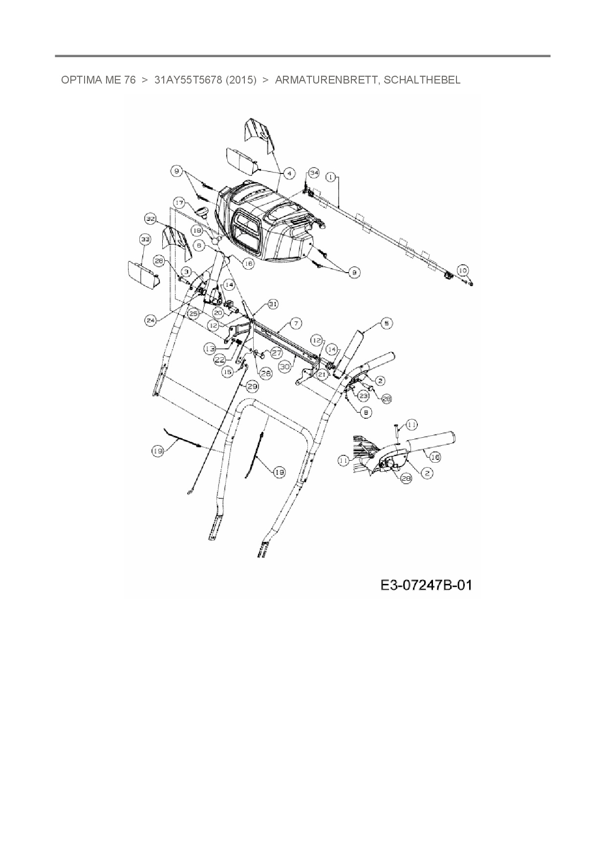 Ersatzteile für Schneefräse MTD Optima ME 76 aus der Zeichnung Armaturenbrett, Schalthebel: