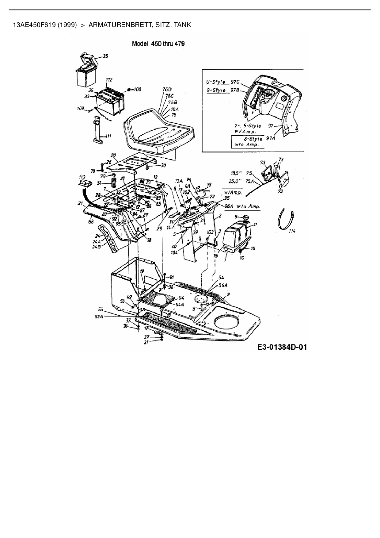 Ersatzteile für Rasentraktor Budget BTR 1101 aus der Zeichnung Armaturenbrett, Sitz, Tank: