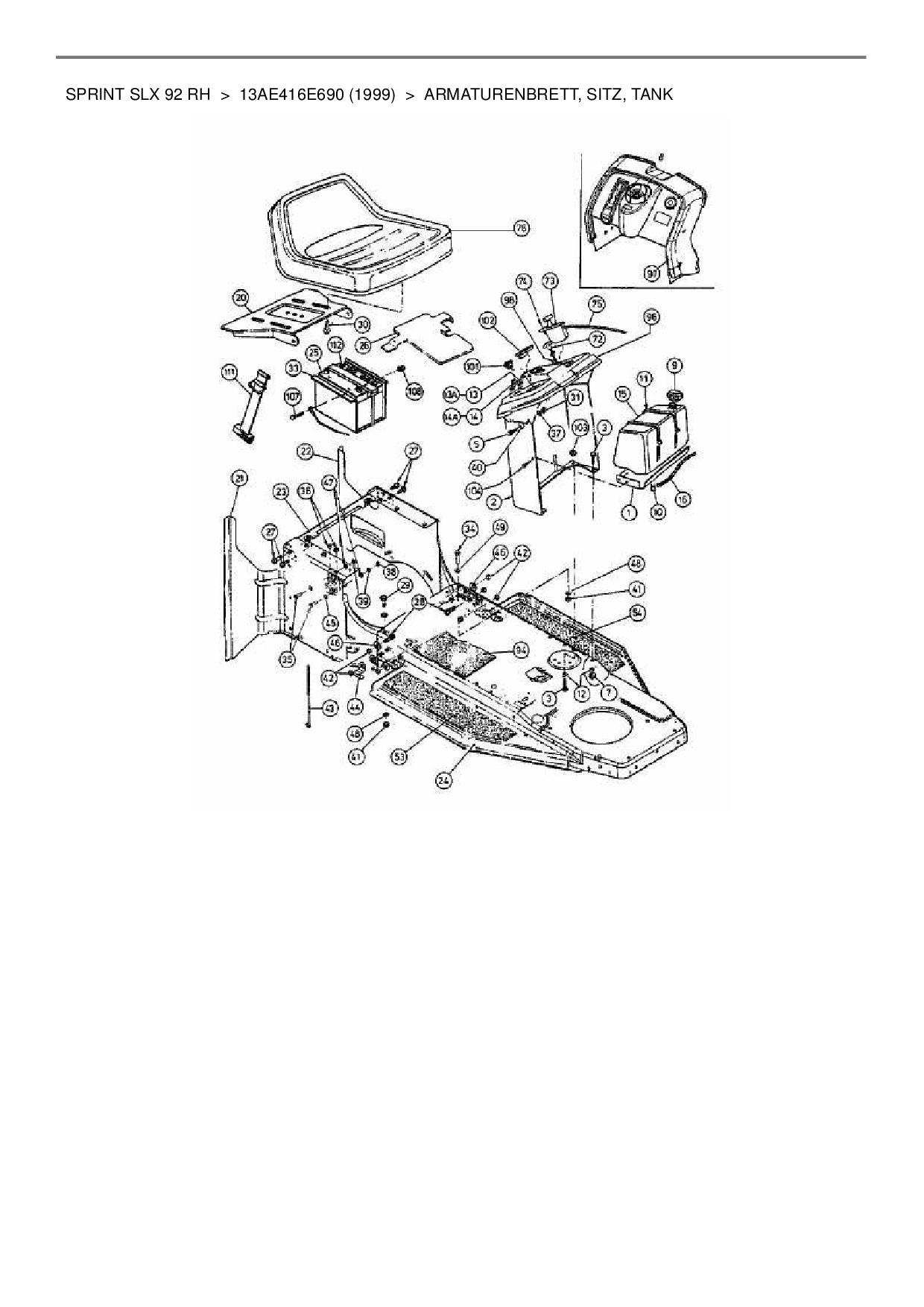 Download Ersatzteil-Zeichnung Gutbrod Sprint SLX 92 RH Zeichnung Armaturenbrett, Sitz, Tank (PDF-Format)