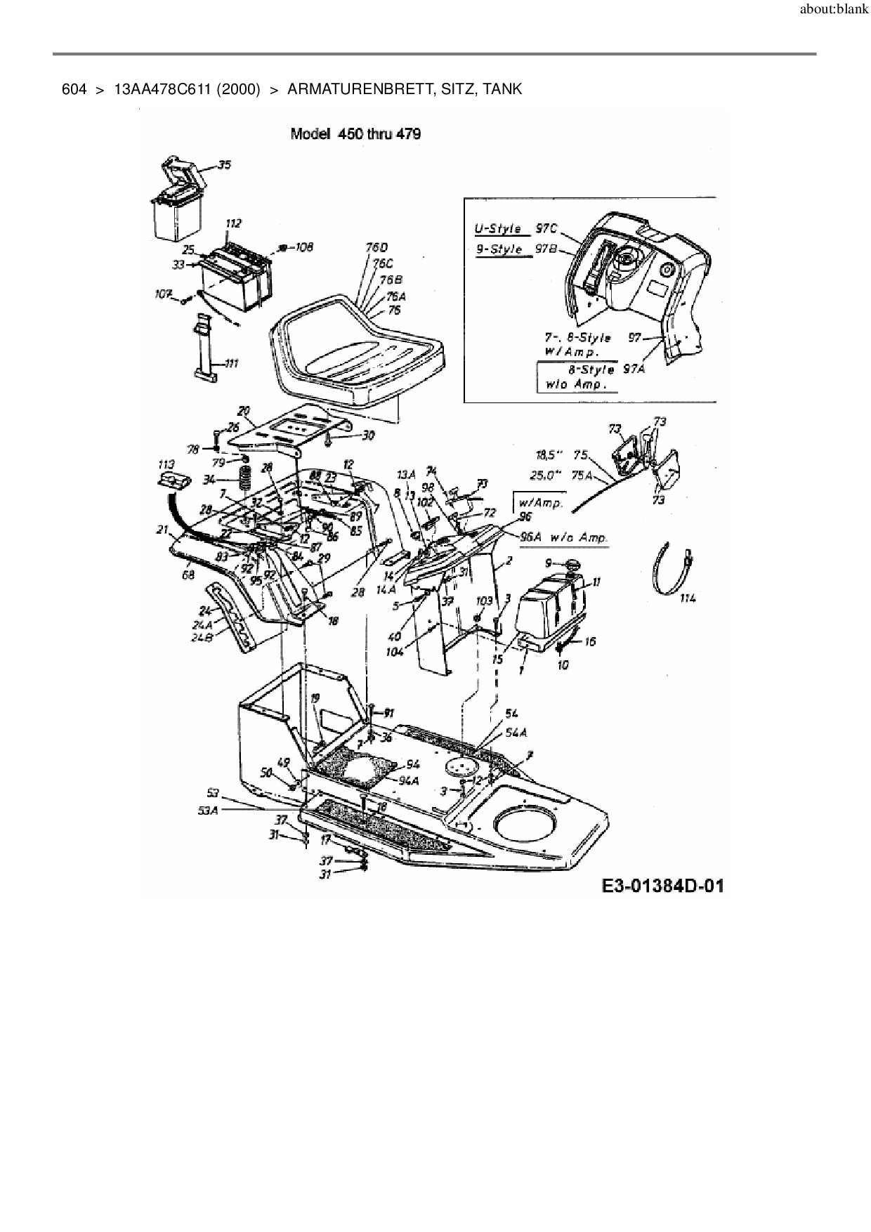 Download Ersatzteil-Zeichnung Lawnflite 604 Zeichnung Armaturenbrett, Sitz, Tank (PDF-Format)