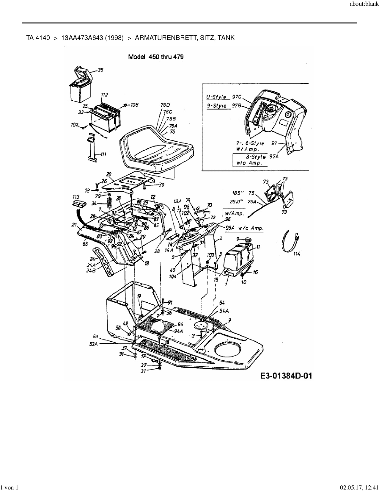 Ersatzteile für Rasentraktor Yard-Man TA 4140 aus der Zeichnung Armaturenbrett, Sitz, Tank: