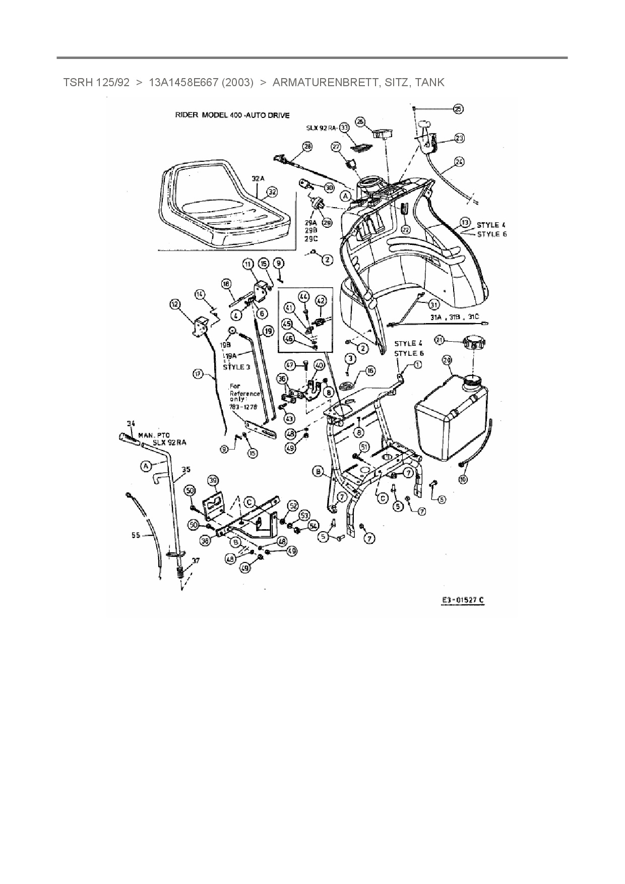 Ersatzteile für Rasentraktor Turbo-Silent TSRH 125/92 aus der Zeichnung Armaturenbrett, Sitz, Tank: