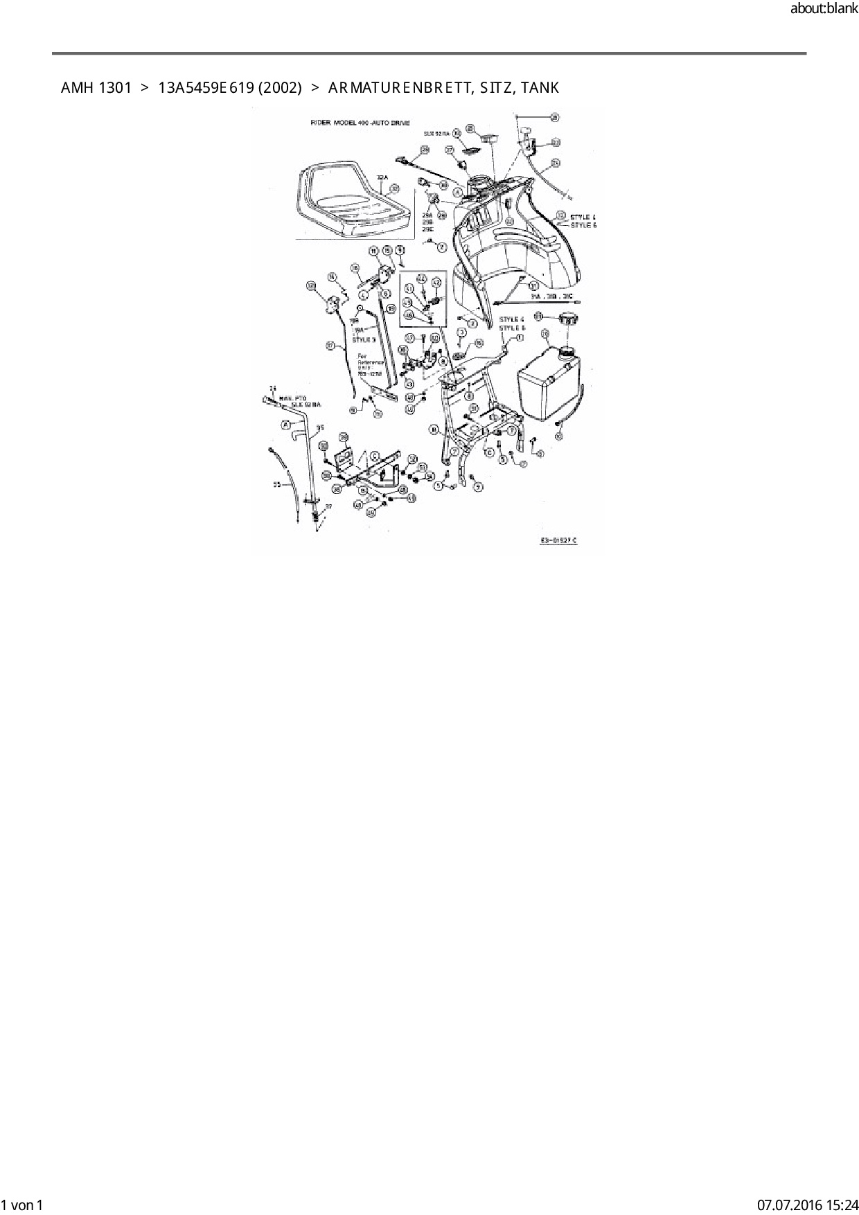 Ersatzteile für Rasentraktor FLEURELLE AMH 1301 aus der Zeichnung Armaturenbrett, Sitz, Tank: