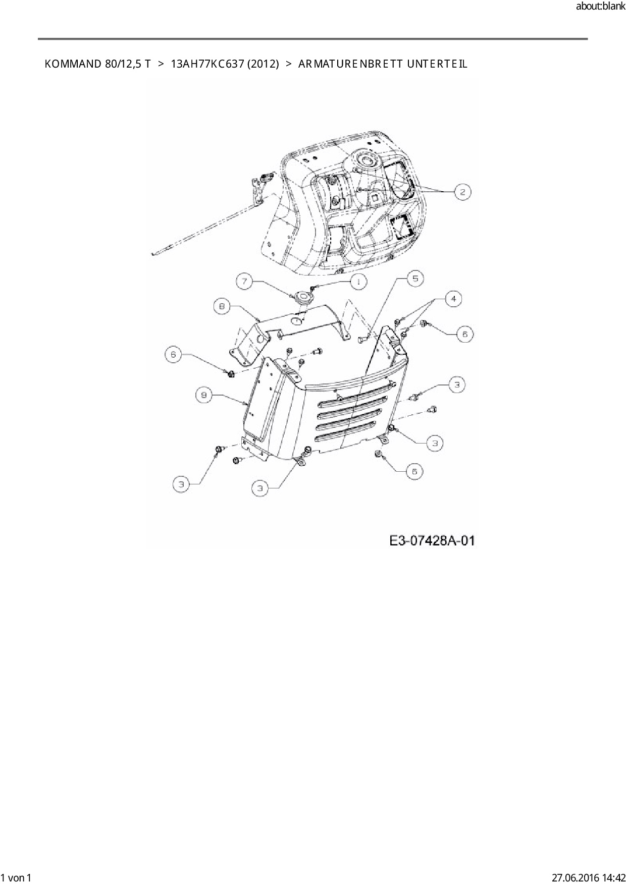 Ersatzteile für Rasentraktor EFCO Kommand 80/12,5 T aus der Zeichnung Armaturenbrett Unterteil: