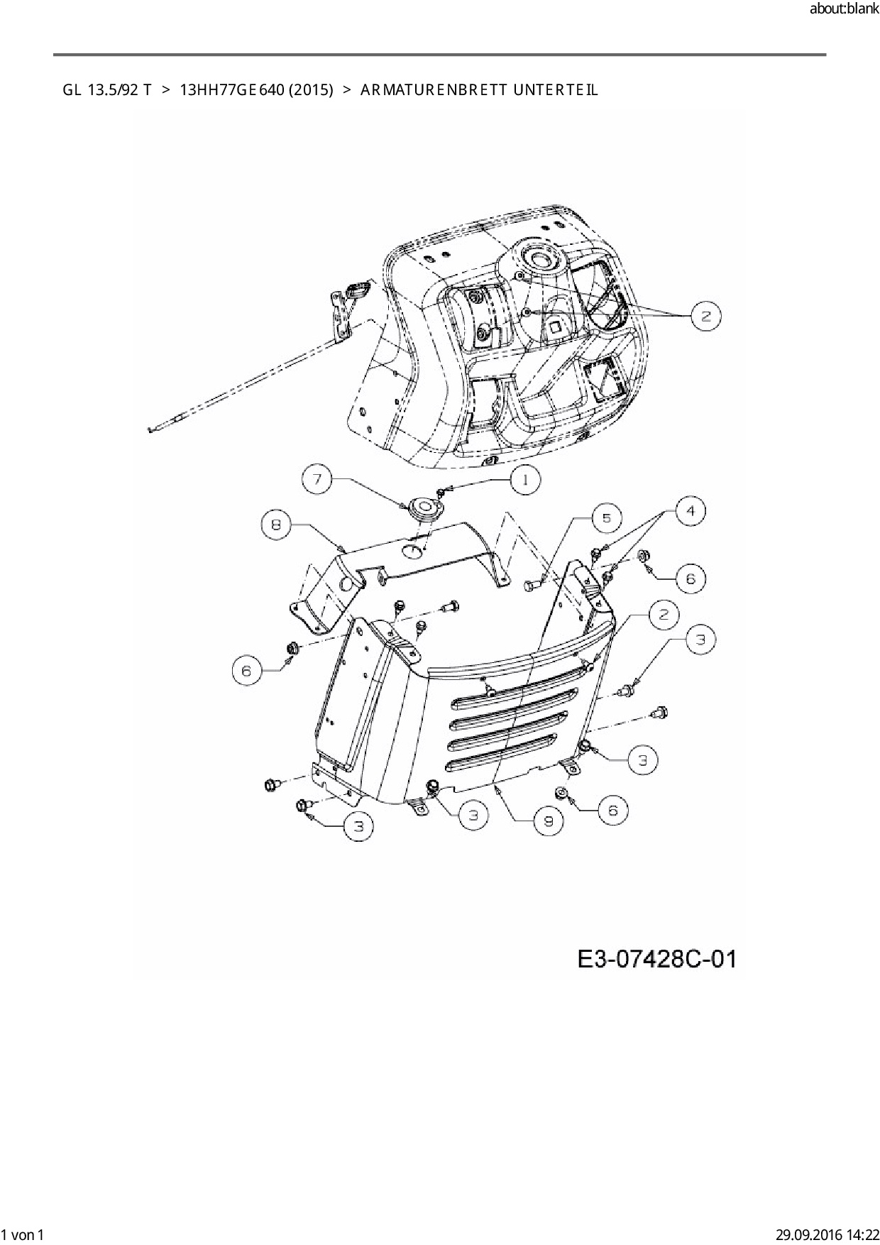 Ersatzteile für Rasentraktor Gartenland GL 13.5/92 T aus der Zeichnung Armaturenbrett Unterteil: