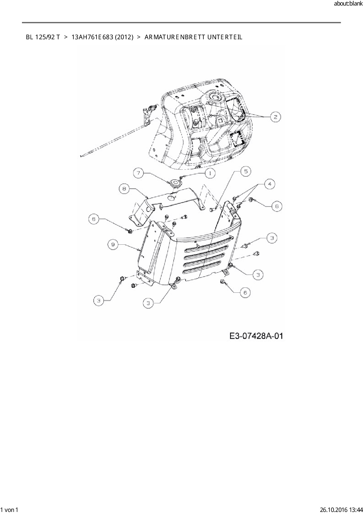 Download Ersatzteil-Zeichnung Black-Line BL 125/92 T Zeichnung Armaturenbrett Unterteil (PDF-Format)