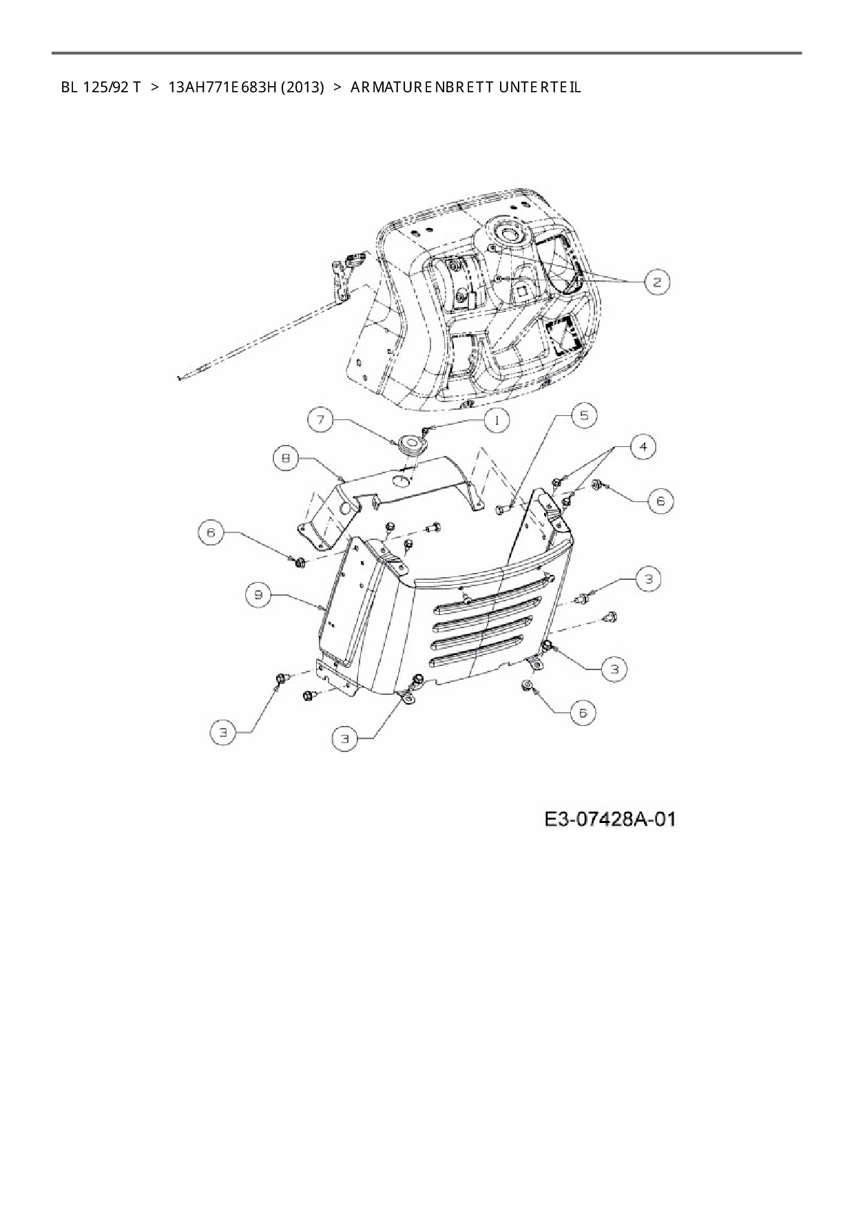 Ersatzteile für Rasentraktor Black-Line BL 125/92 T aus der Zeichnung Armaturenbrett Unterteil: