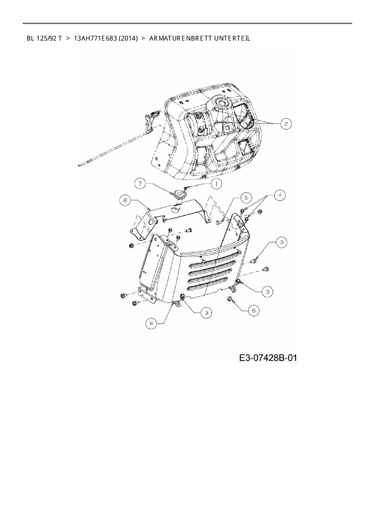 Ersatzteile für Rasentraktor Black-Line BL 125/92 T aus der Zeichnung Armaturenbrett Unterteil: