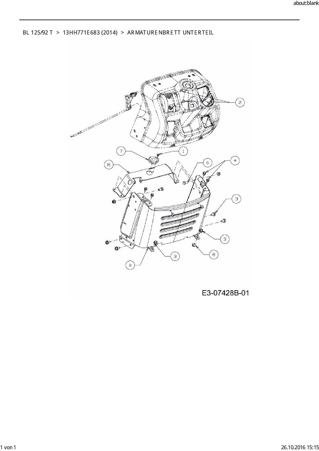 Ersatzteile für Rasentraktor Black-Line BL 125/92 T aus der Zeichnung Armaturenbrett Unterteil: