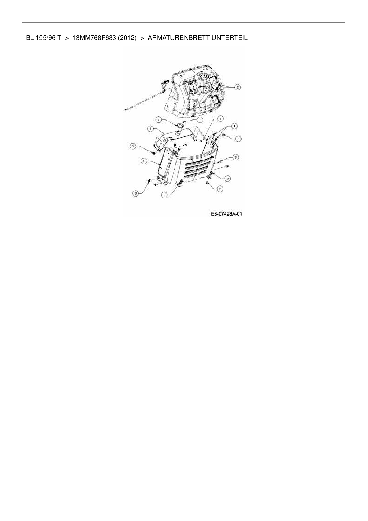 Ersatzteile für Rasentraktor Black-Line BL 155/96 T aus der Zeichnung Armaturenbrett Unterteil: