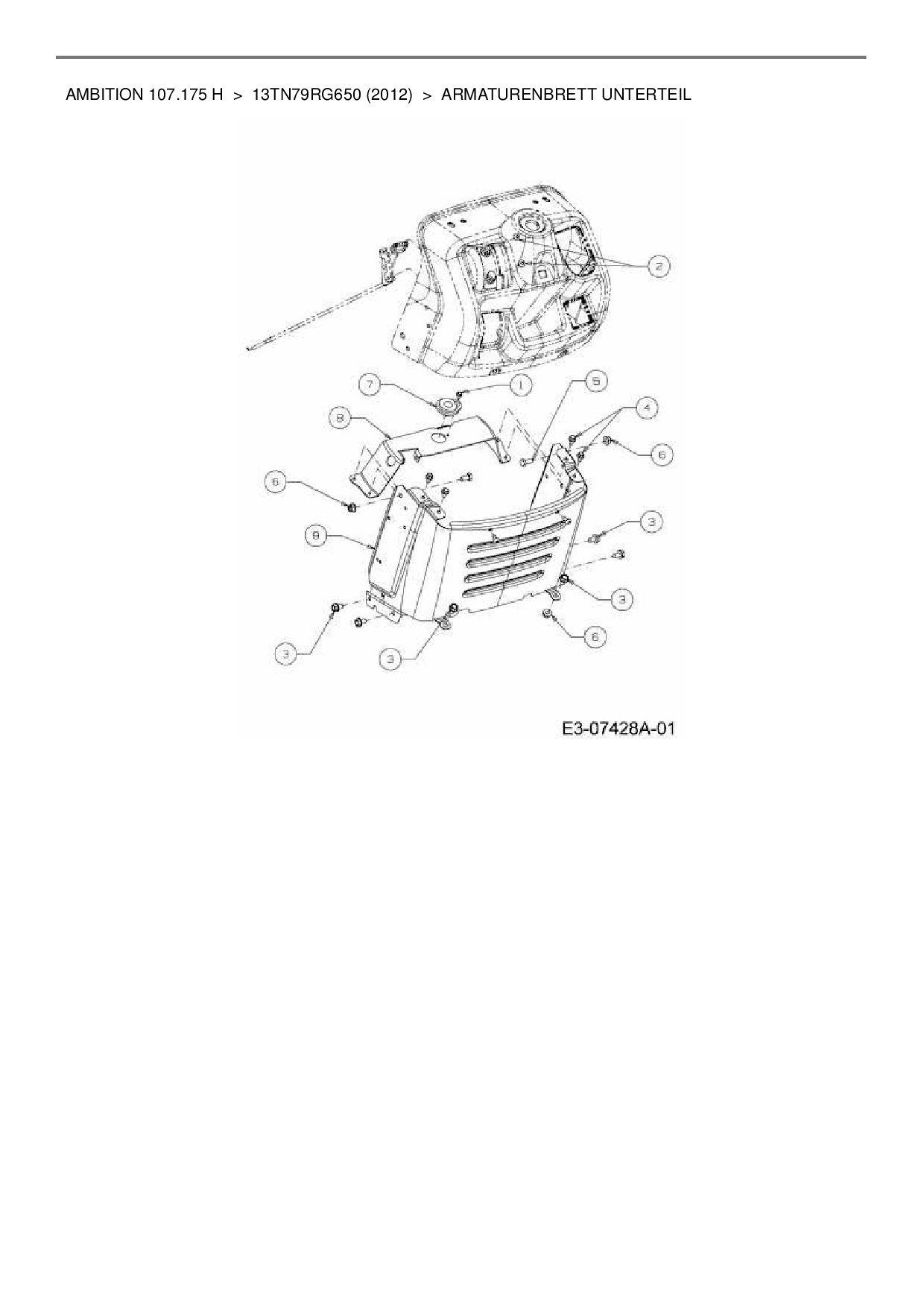 Ersatzteile für Rasentraktor Wolf-Garten Ambition 107.175 H aus der Zeichnung Armaturenbrett Unterteil:
