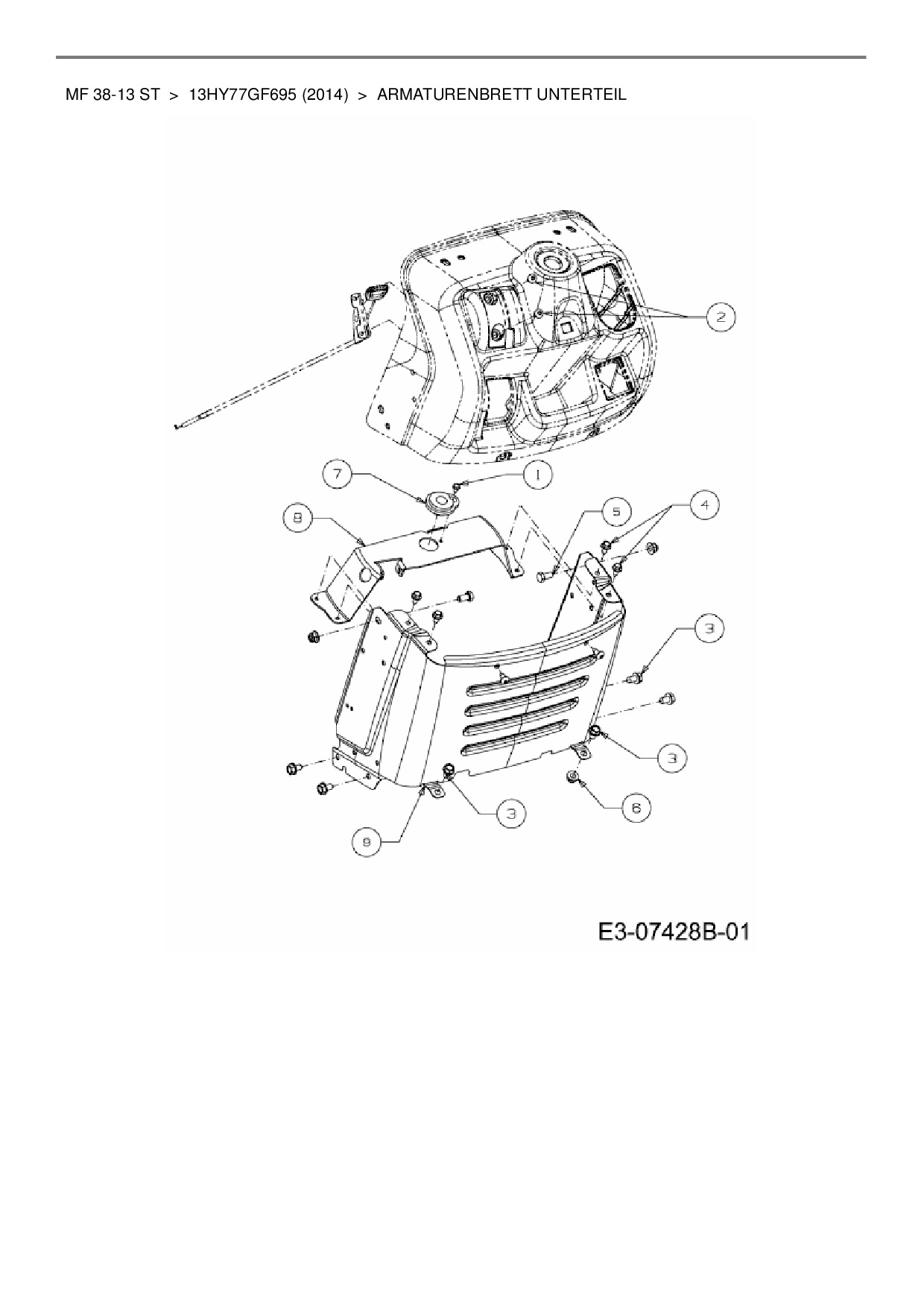 Ersatzteile für Rasentraktor Massey Ferguson MF 38-13 ST aus der Zeichnung Armaturenbrett Unterteil: