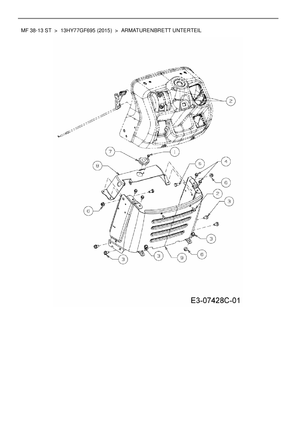 Download Ersatzteil-Zeichnung Massey Ferguson MF 38-13 ST Zeichnung Armaturenbrett Unterteil (PDF-Format)