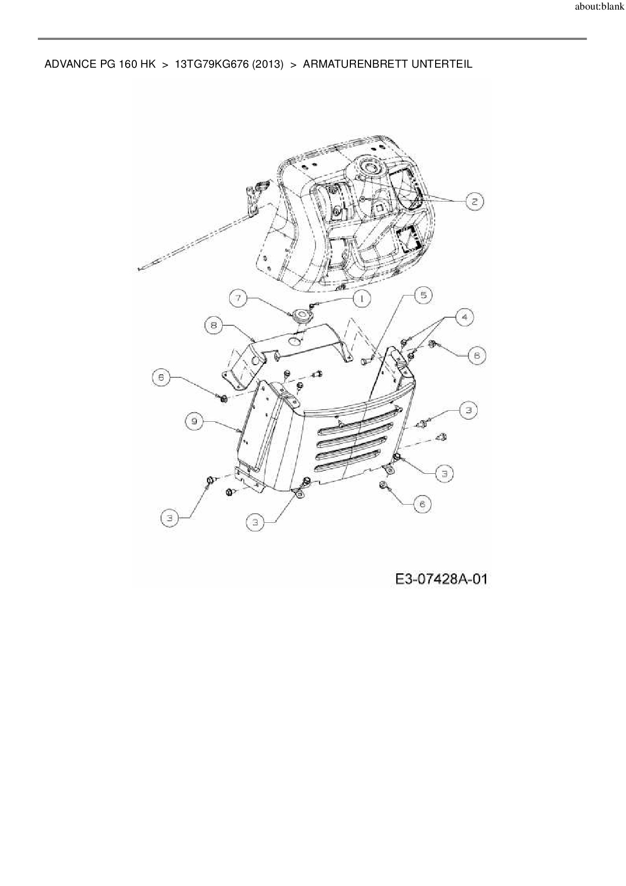 Ersatzteile für Rasentraktor MTD Advance PG 160 HK aus der Zeichnung Armaturenbrett Unterteil: