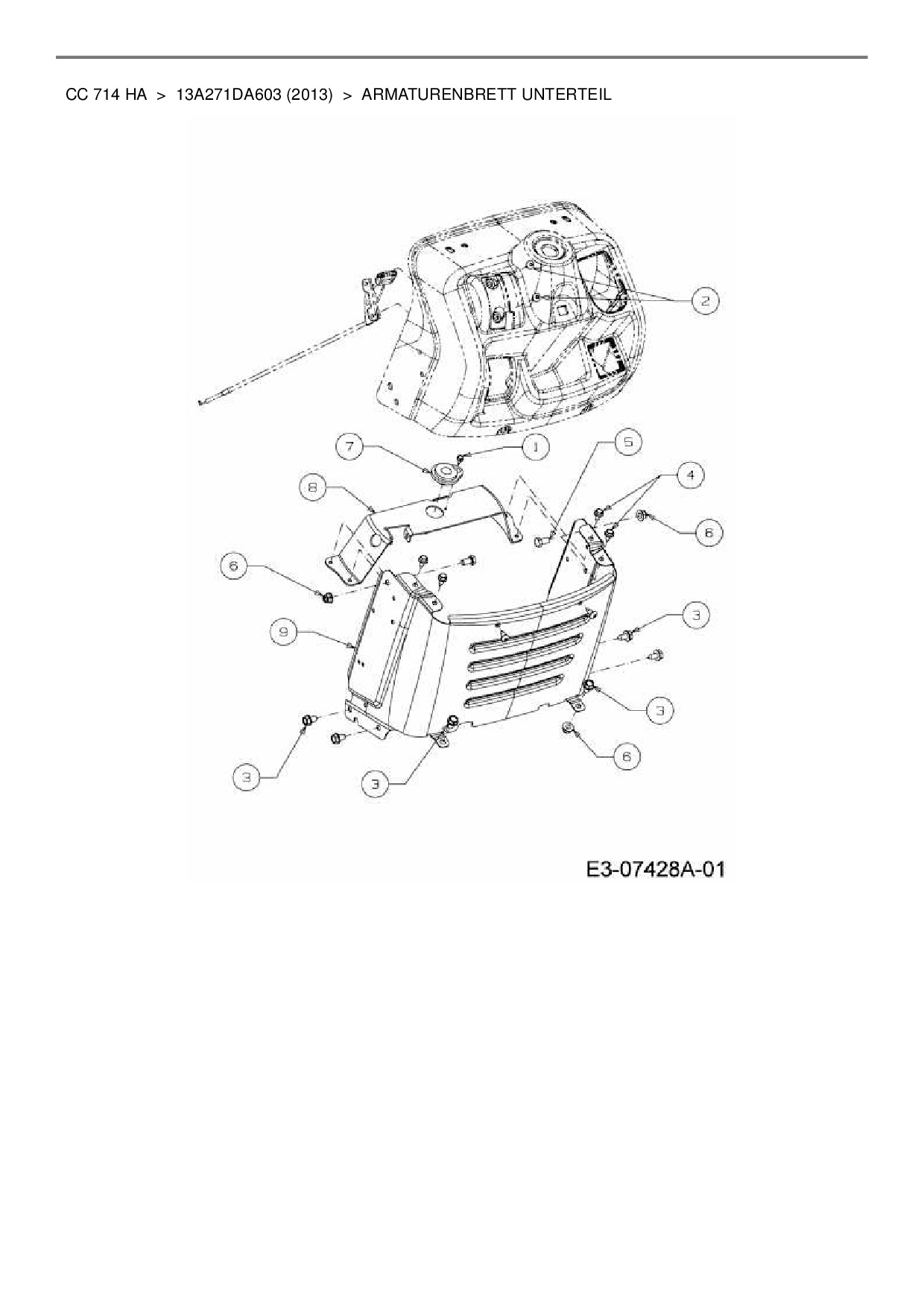 Ersatzteile für Rasentraktor Cub Cadet CC 714 HA aus der Zeichnung Armaturenbrett Unterteil:
