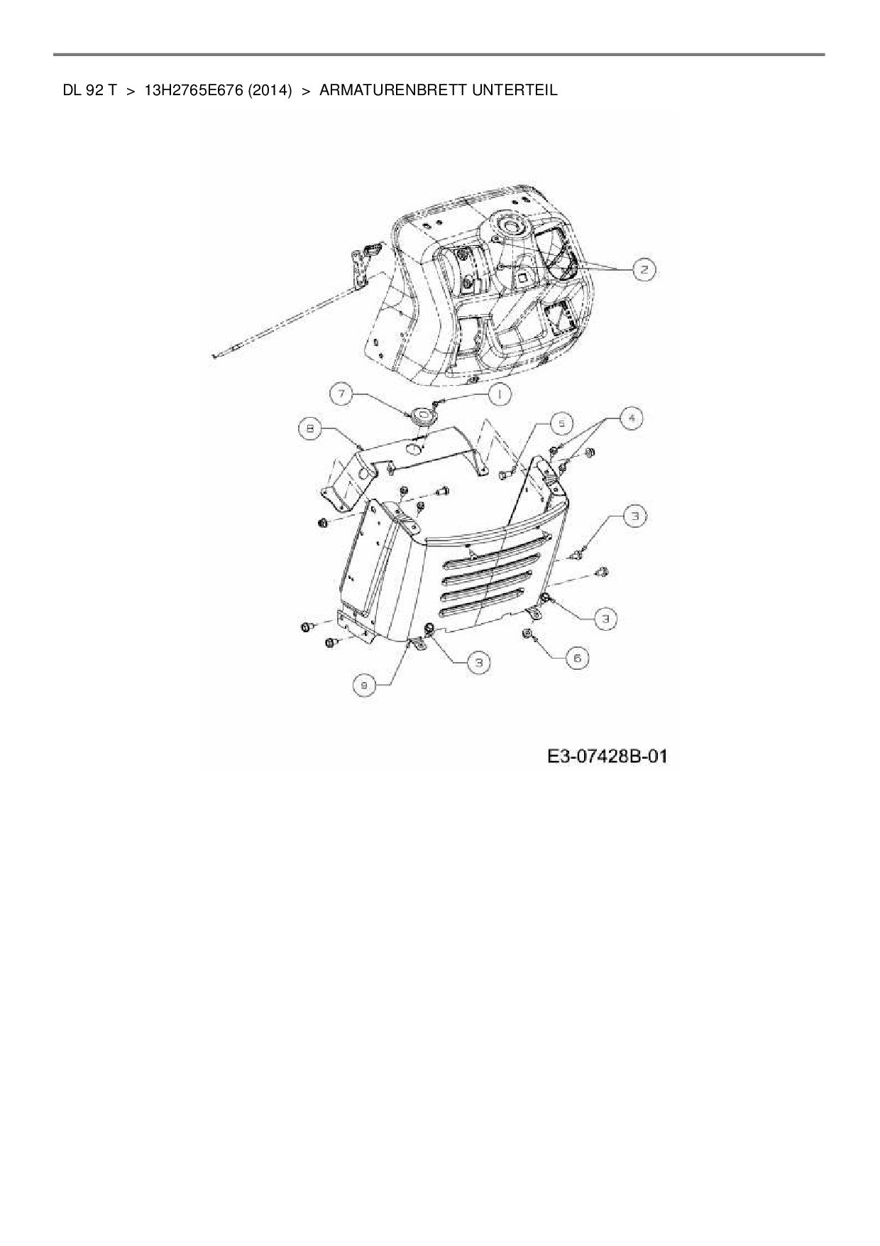 Ersatzteile für Rasentraktor MTD DL 92 T aus der Zeichnung Armaturenbrett Unterteil: