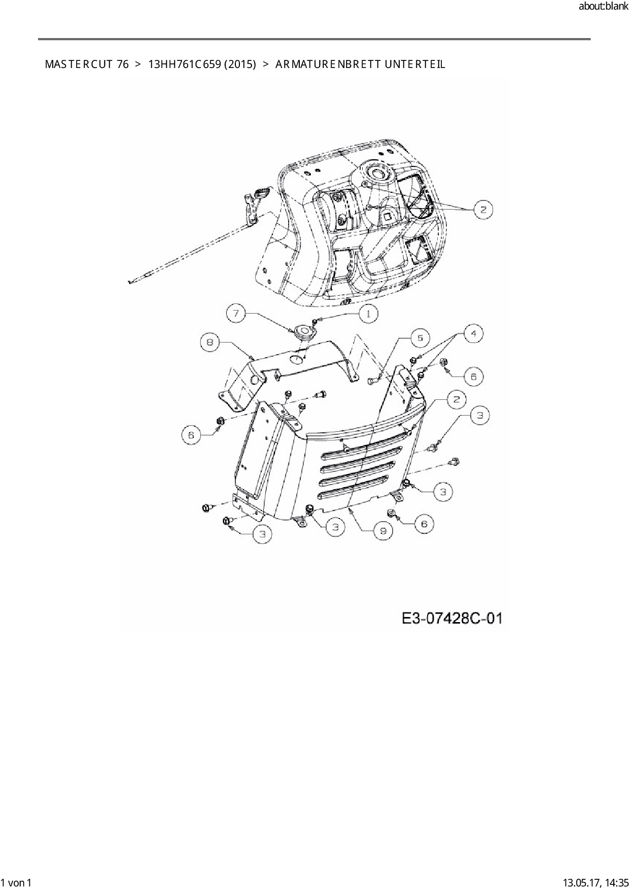 Ersatzteile für Rasentraktor Mastercut Mastercut 76 aus der Zeichnung Armaturenbrett Unterteil: