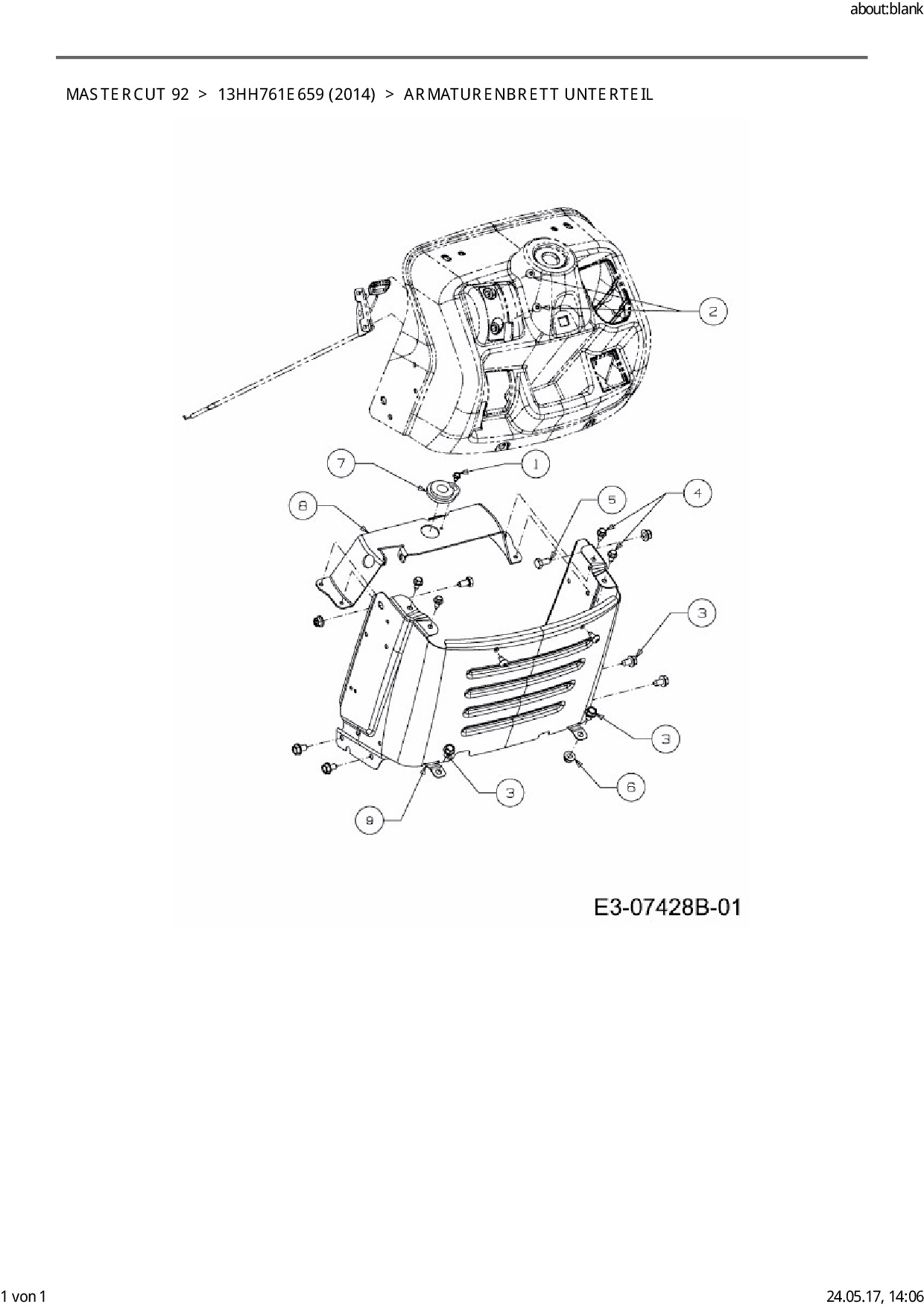 Ersatzteile für Rasentraktor Mastercut Mastercut 92 aus der Zeichnung Armaturenbrett Unterteil: