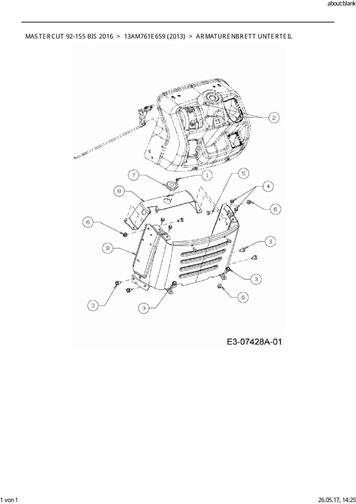 Ersatzteile für Rasentraktor Mastercut Mastercut 92-155 bis 2016 aus der Zeichnung Armaturenbrett Unterteil: