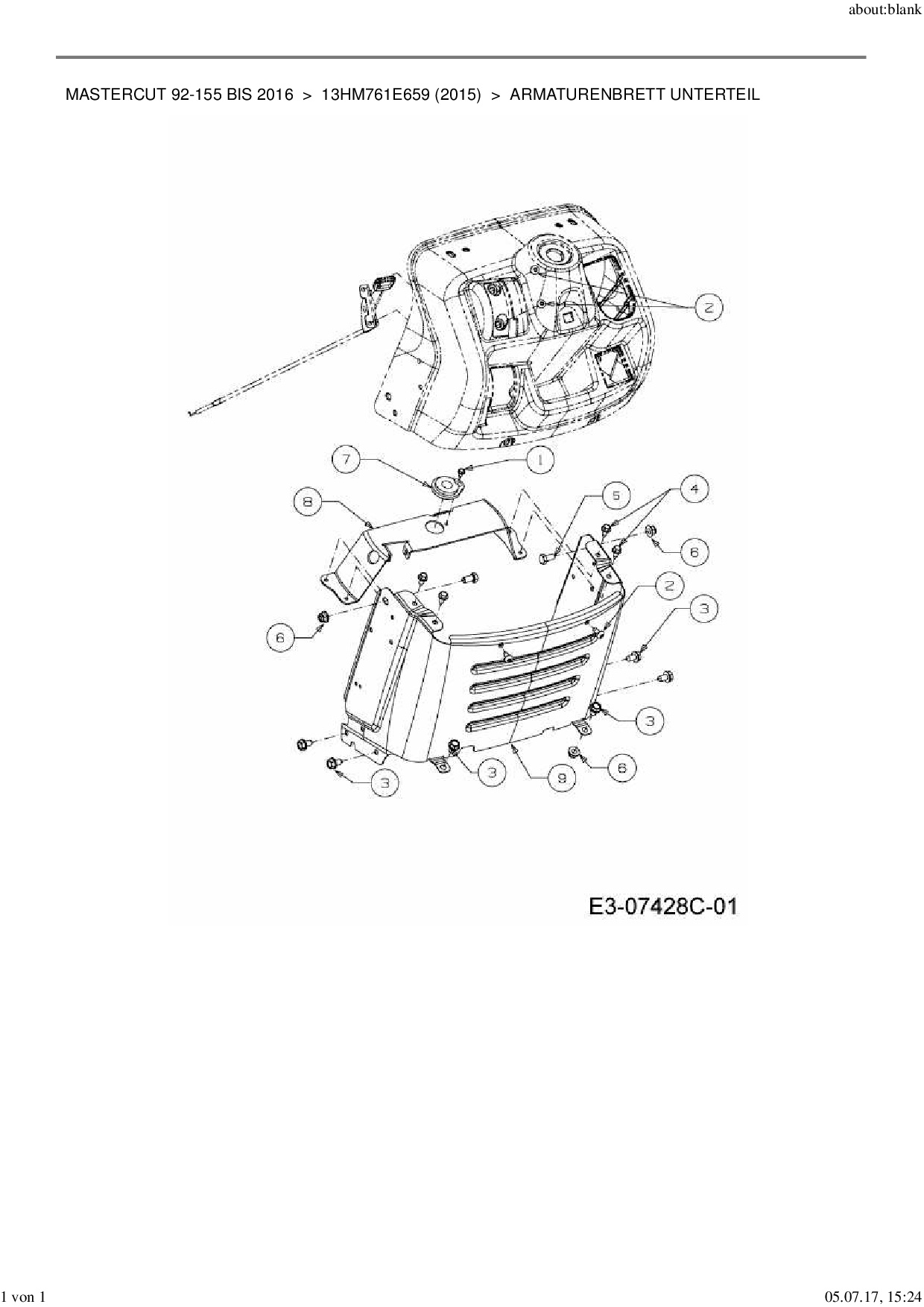 Ersatzteile für Rasentraktor Mastercut Mastercut 92-155 bis 2016 aus der Zeichnung Armaturenbrett Unterteil: