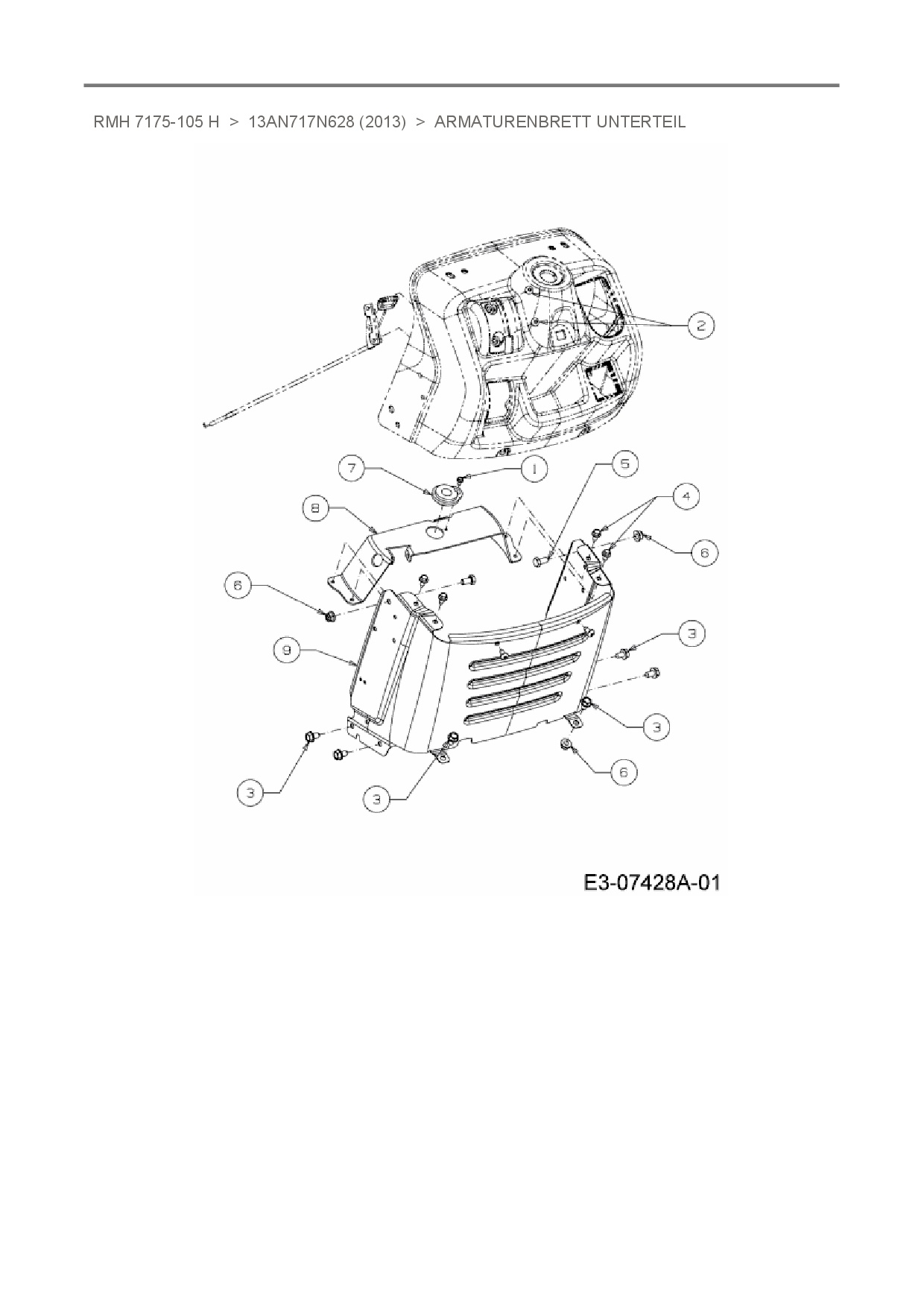 Ersatzteile für Rasentraktor Raiffeisen RMH 7175-105 H aus der Zeichnung Armaturenbrett Unterteil: