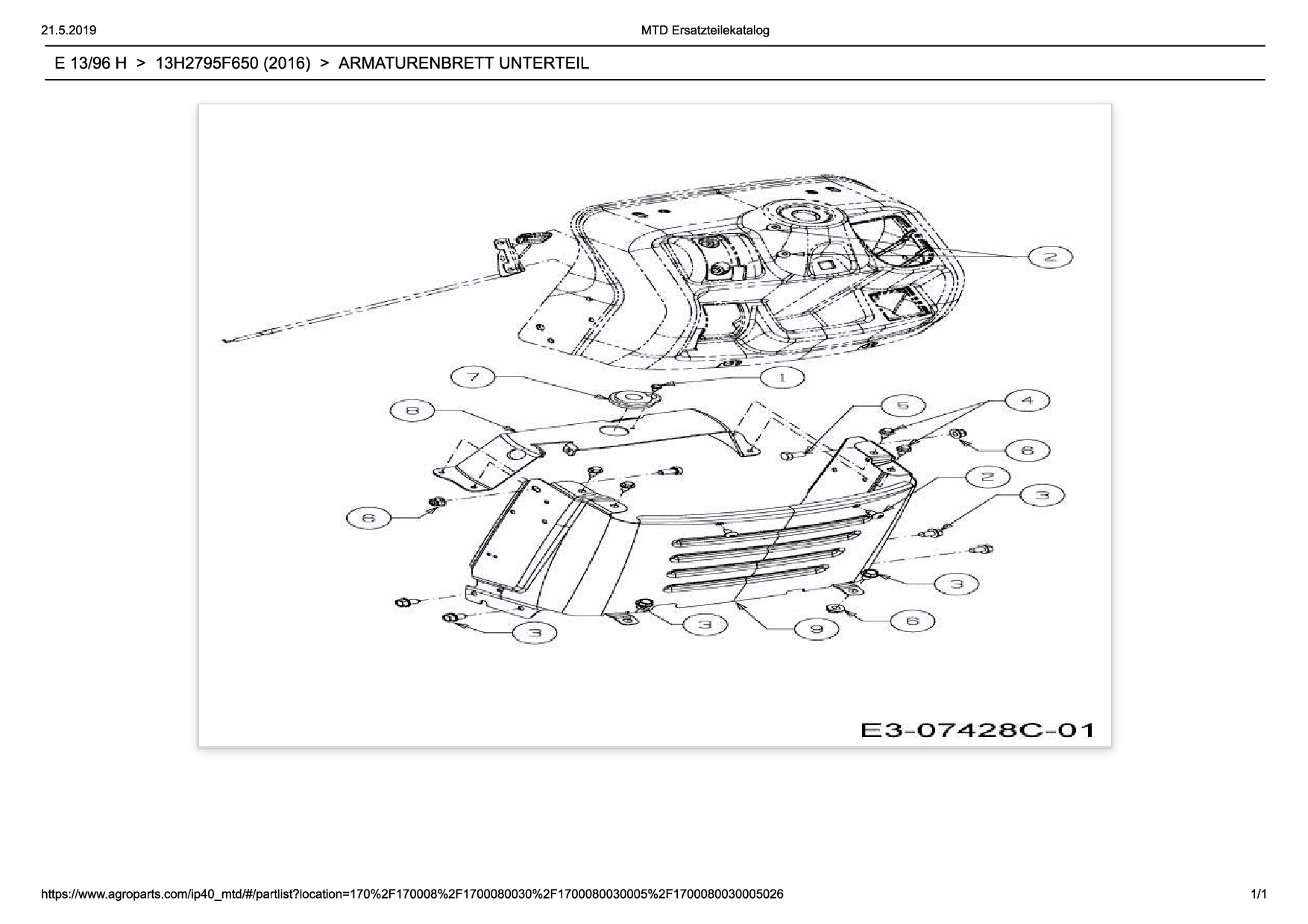 Ersatzteile für Rasentraktor Wolf-Garten Expert E 13/96 H aus der Zeichnung Armaturenbrett Unterteil: