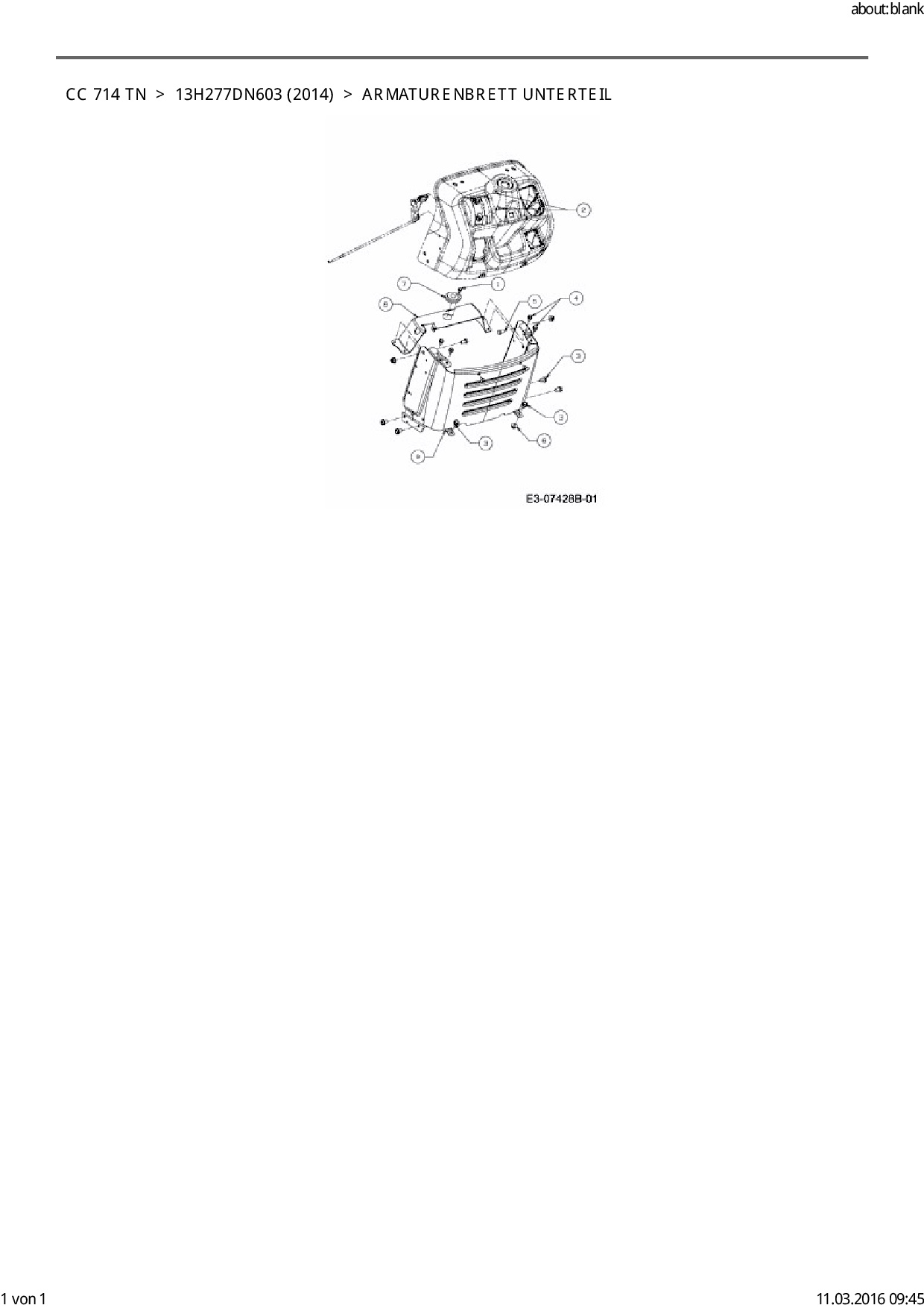 Ersatzteile für Rasentraktor Cub Cadet CC 714 TN aus der Zeichnung Armaturenbrett Unterteil: