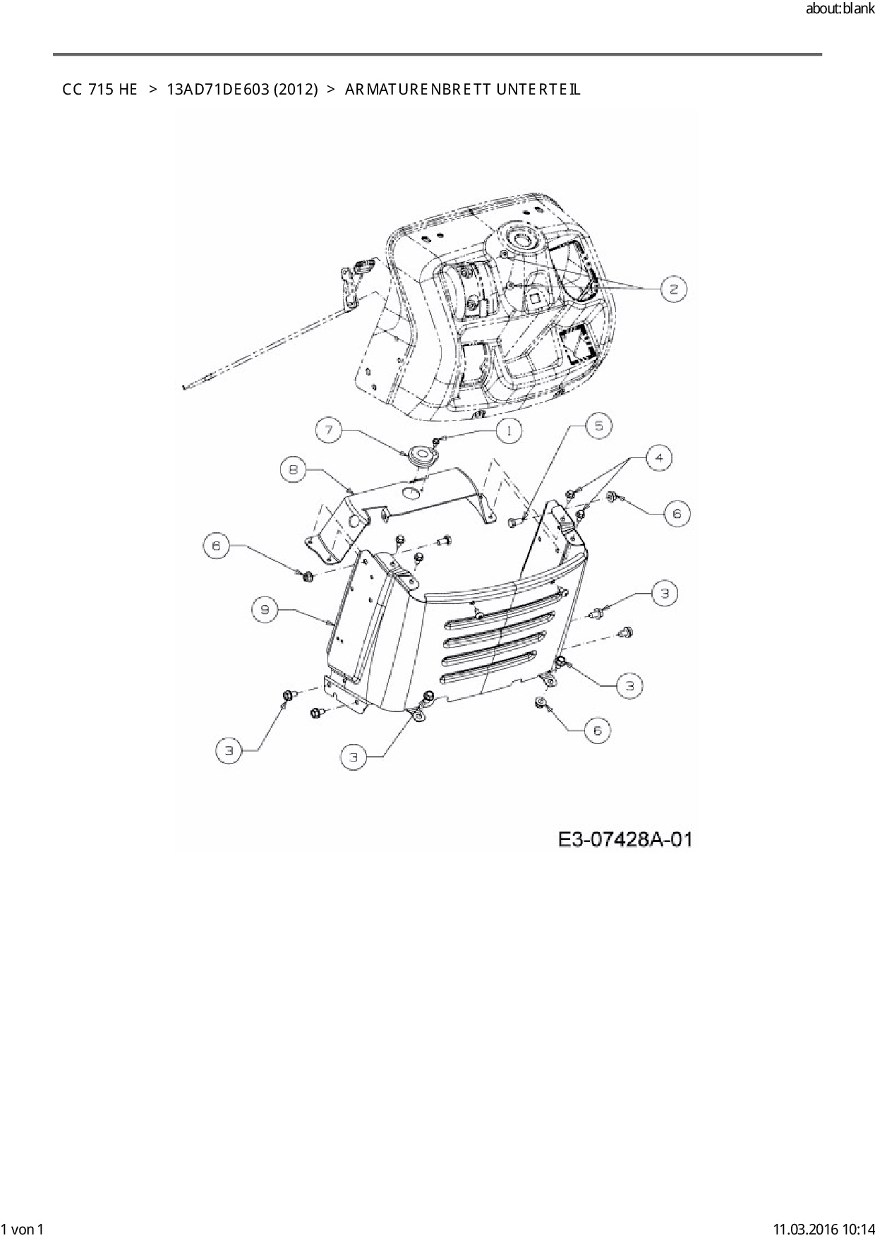 Ersatzteile für Rasentraktor Cub Cadet CC 715 HE aus der Zeichnung Armaturenbrett Unterteil: