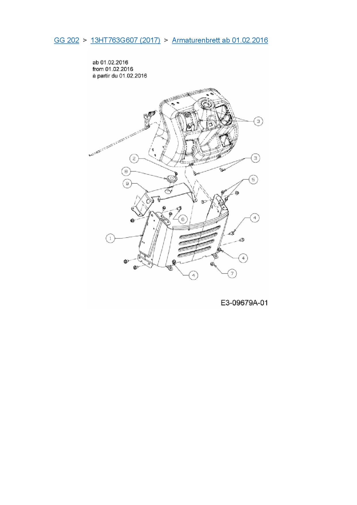 Ersatzteile für Rasentraktor Blisar GG 202 aus der Zeichnung Armaturenbrett ab 01.02.2016: