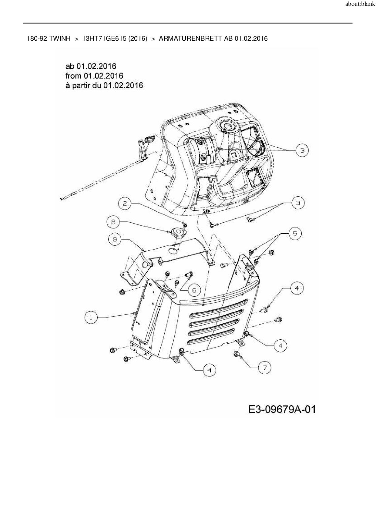 Ersatzteile für Rasentraktor Black Edition 180-92 TwinH aus der Zeichnung Armaturenbrett ab 01.02.2016: