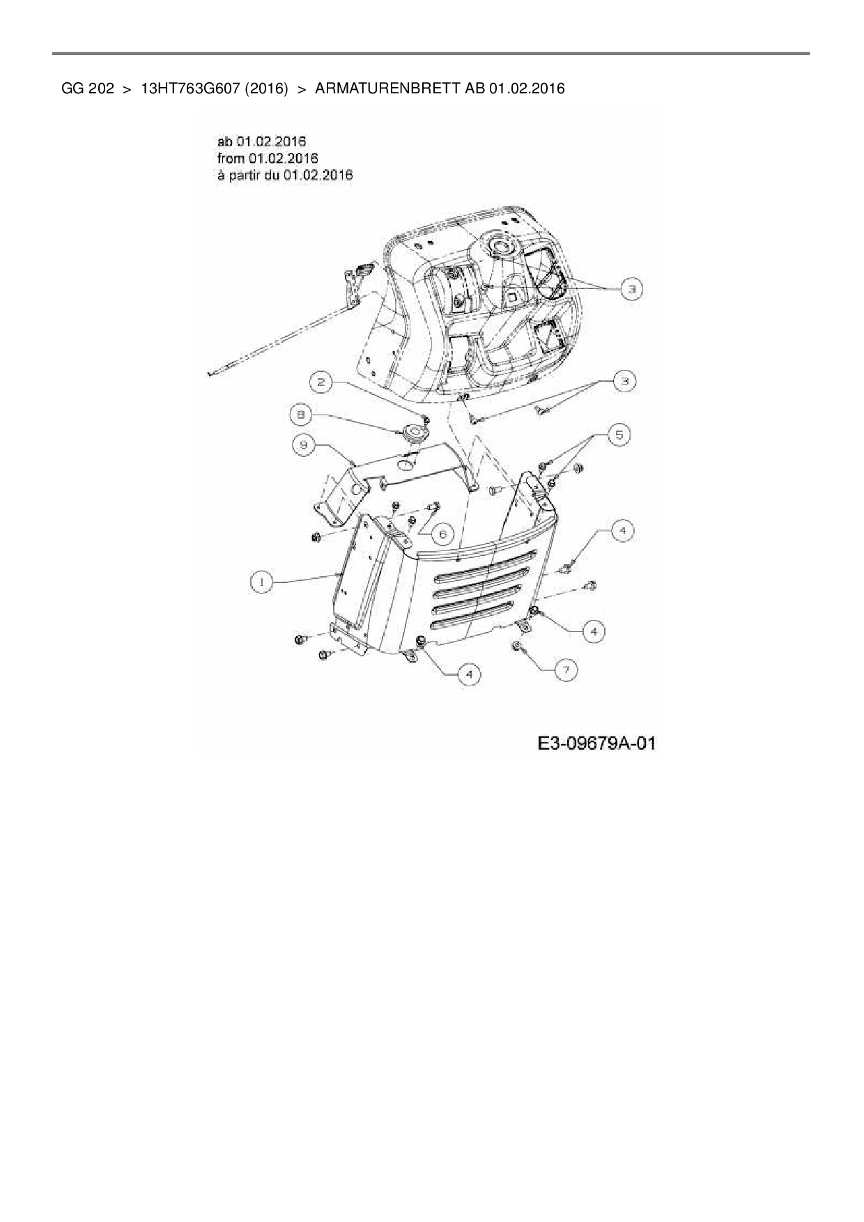 Ersatzteile für Rasentraktor Blisar GG 202 aus der Zeichnung Armaturenbrett ab 01.02.2016: