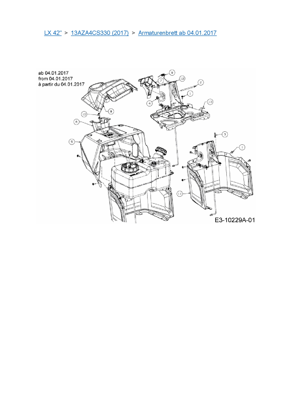 Ersatzteile für Rasentraktor Cub Cadet LX 42" aus der Zeichnung Armaturenbrett ab 04.01.2017: