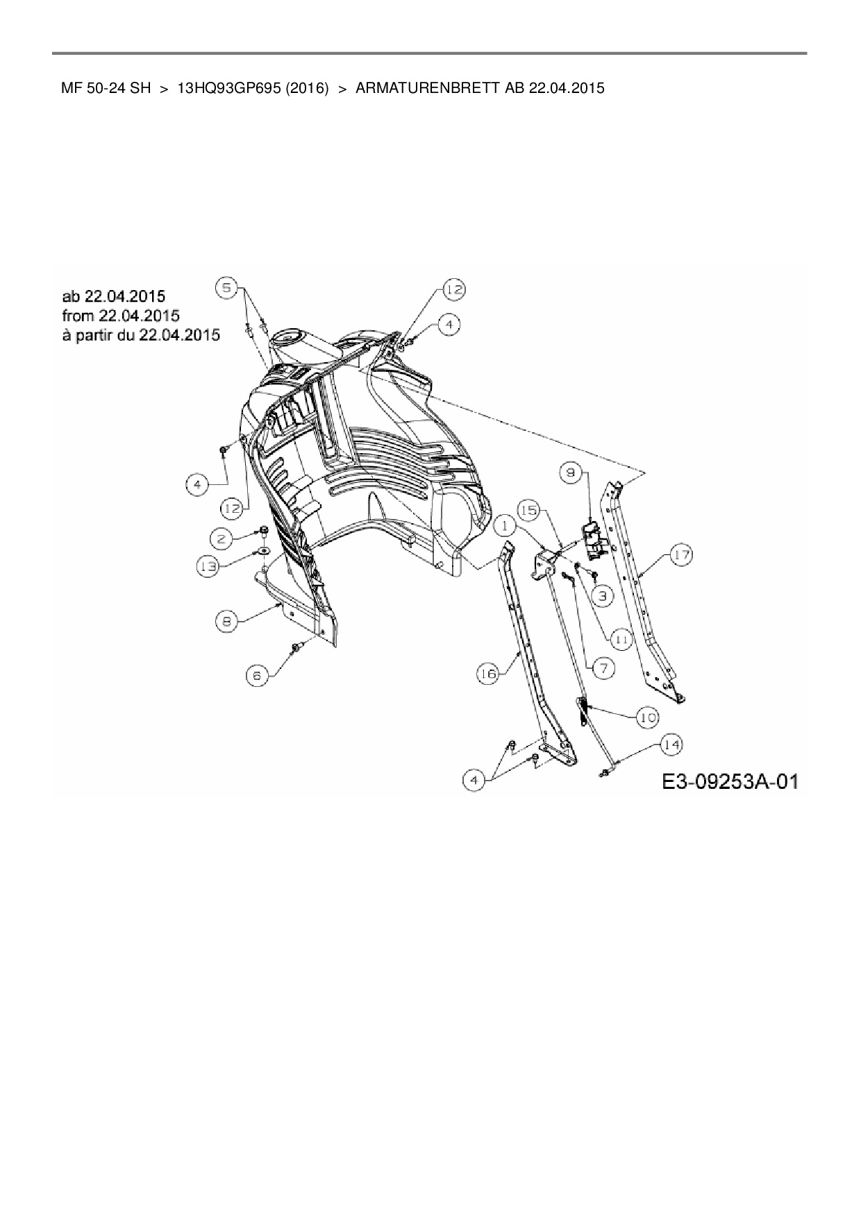 Ersatzteile für Rasentraktor Massey Ferguson MF 50-24 SH aus der Zeichnung Armaturenbrett ab 22.04.2015: