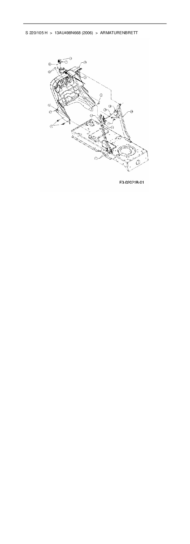 Ersatzteile für Rasentraktor Mac Allister S 220/105 H aus der Zeichnung Armaturenbrett: