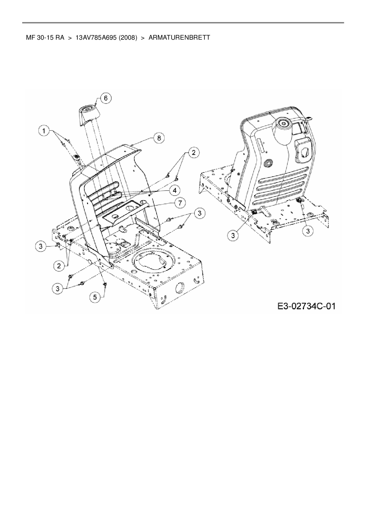 Die Ersatzteil-Zeichnung für Rasentraktor Massey Ferguson MF 30-15 RA als Download: