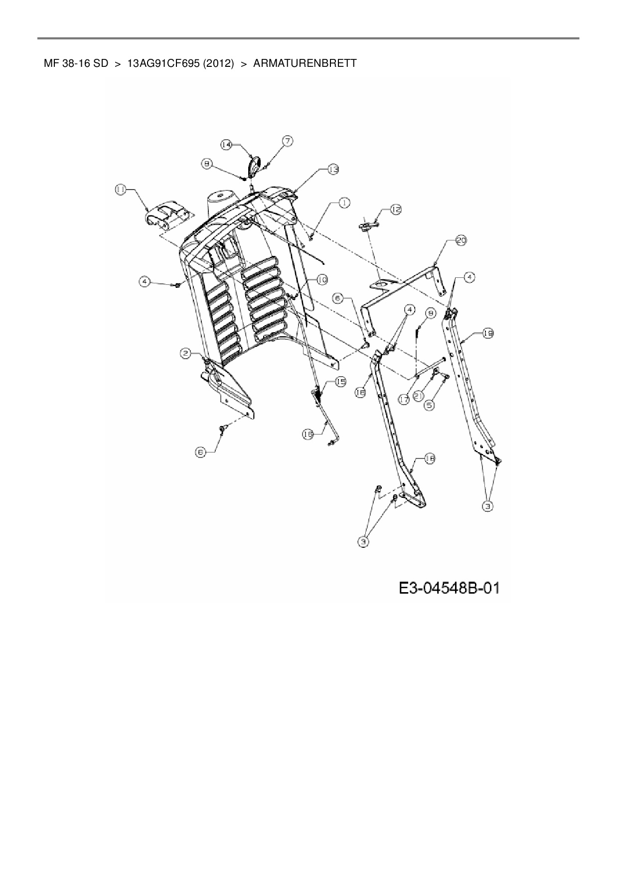 Ersatzteile für Rasentraktor Massey Ferguson MF 38-16 SD aus der Zeichnung Armaturenbrett: