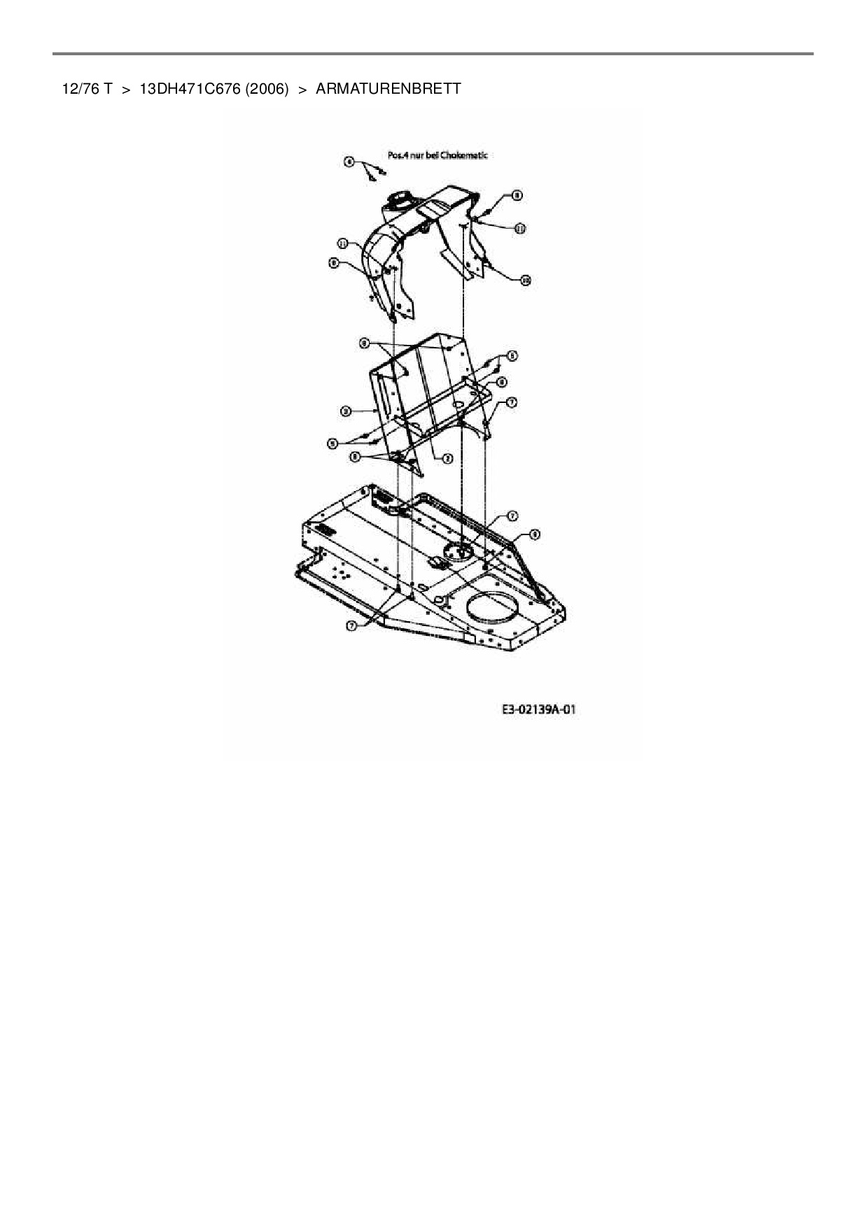 Ersatzteile für Rasentraktor MTD 12/76 T aus der Zeichnung Armaturenbrett: