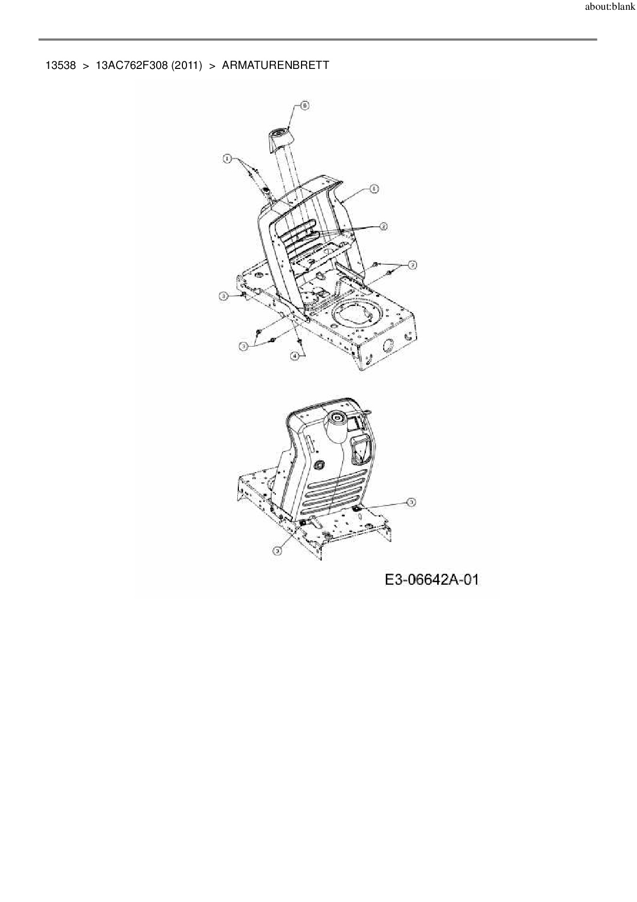 Ersatzteile für Rasentraktor MTD 13538 aus der Zeichnung Armaturenbrett: