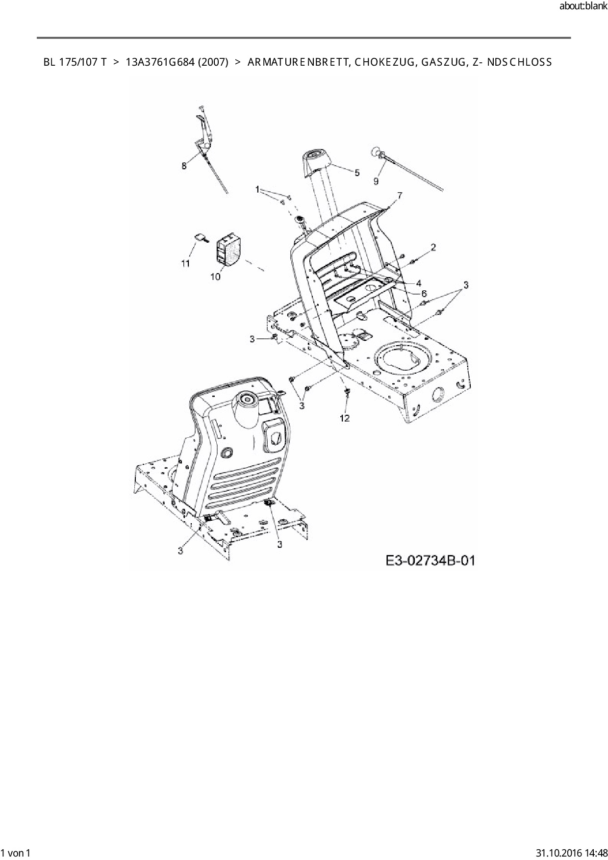 Ersatzteile für Rasentraktor Bolens BL 175/107 T aus der Zeichnung Armaturenbrett: