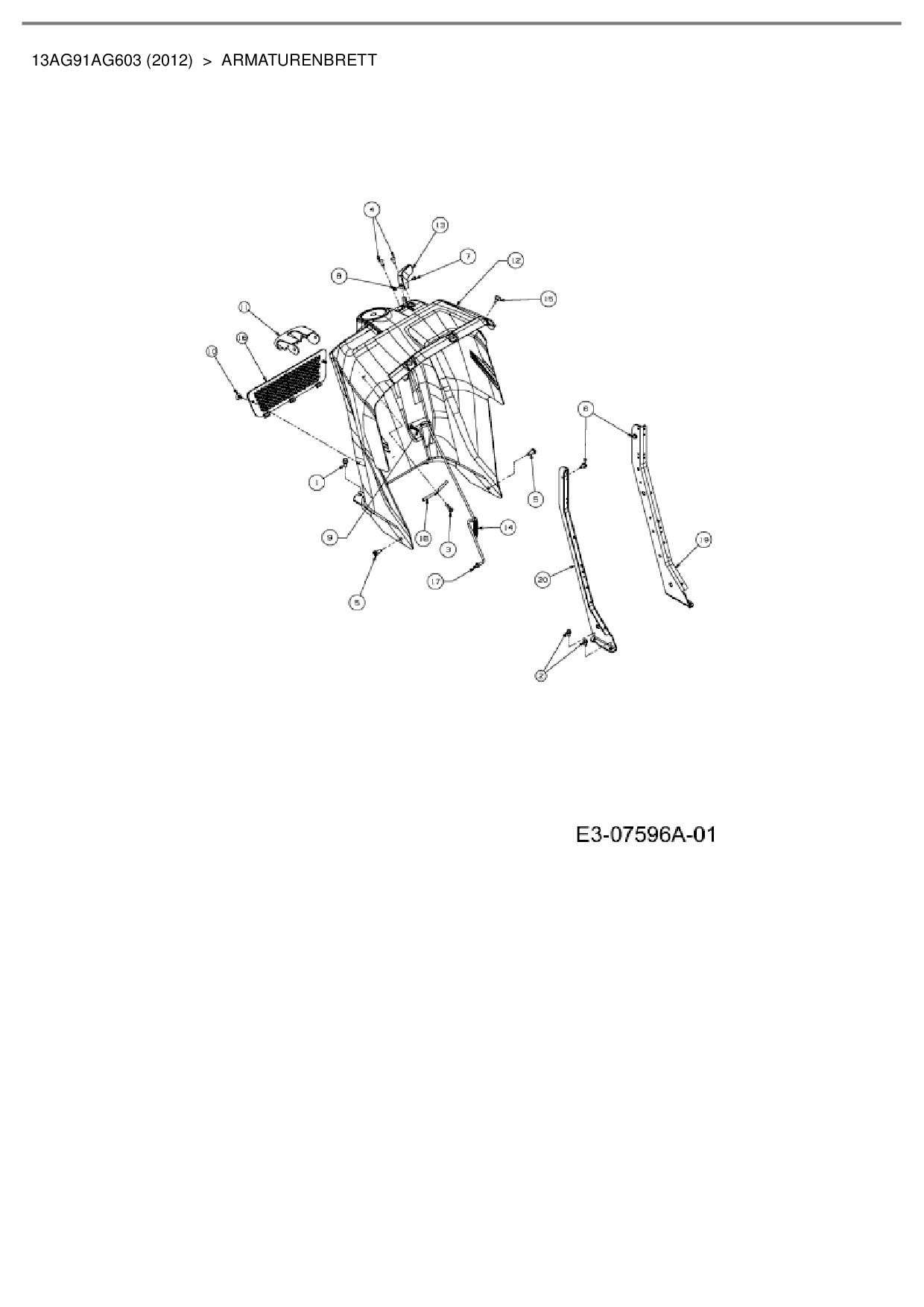 Ersatzteile für Rasentraktor Cub Cadet CC 1016 KHG aus der Zeichnung Armaturenbrett: