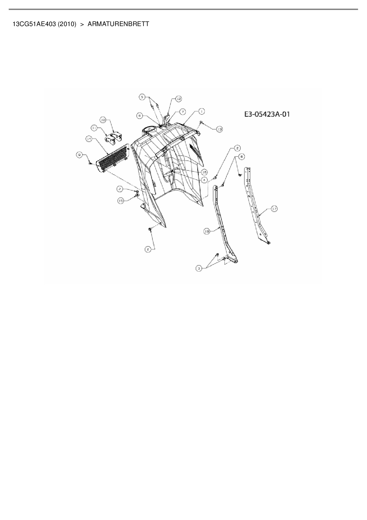Ersatzteile für Rasentraktor Cub Cadet CC 1016 RD-E aus der Zeichnung Armaturenbrett: