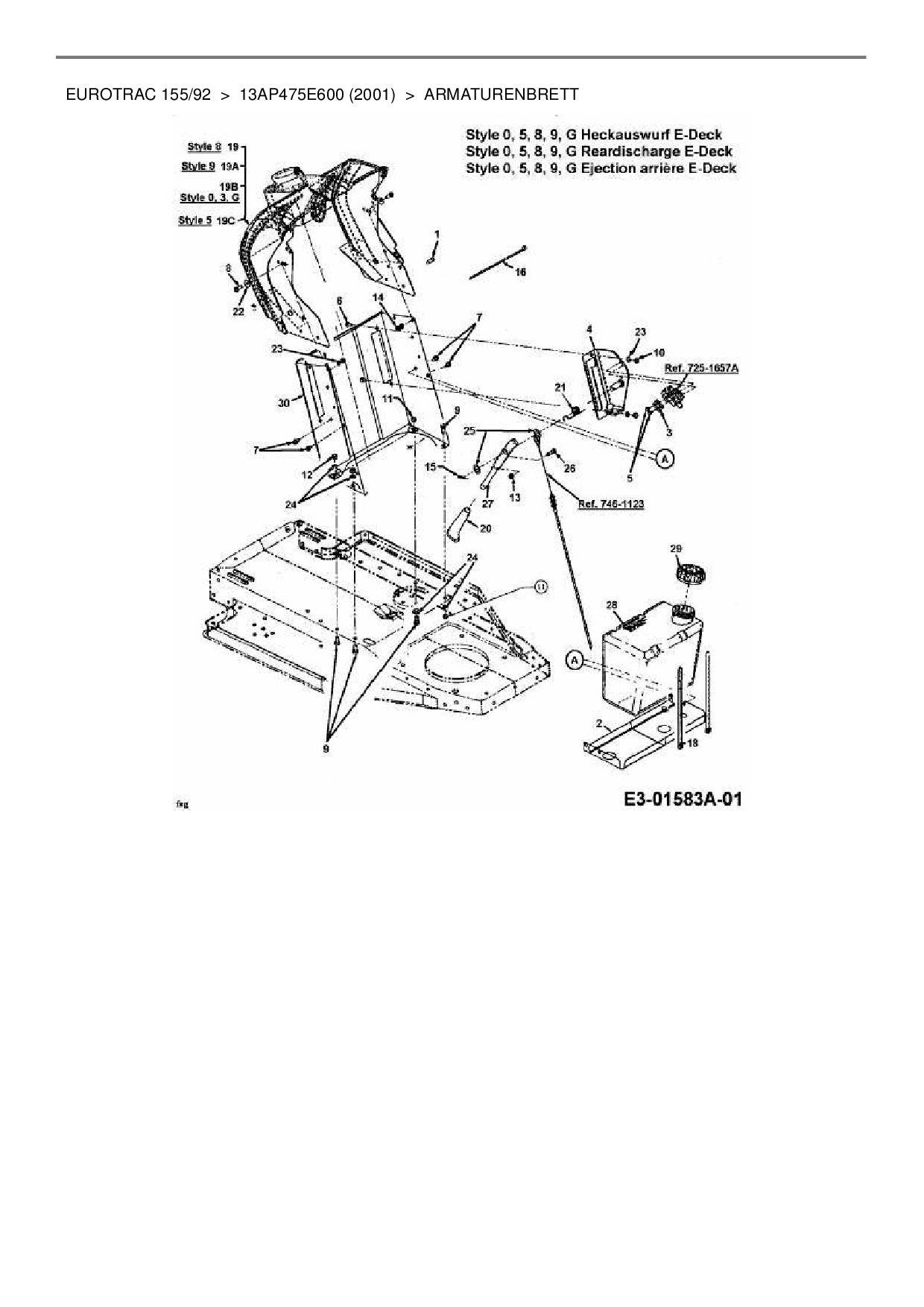 Ersatzteile für Rasentraktor MTD Eurotrac 155/92 aus der Zeichnung Armaturenbrett: