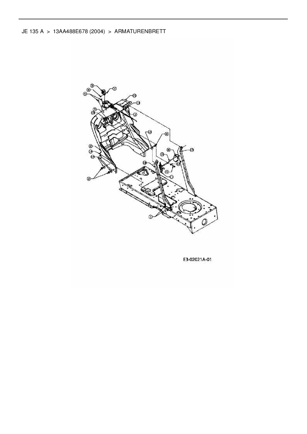 Ersatzteile für Rasentraktor MTD JE 135 A aus der Zeichnung Armaturenbrett:
