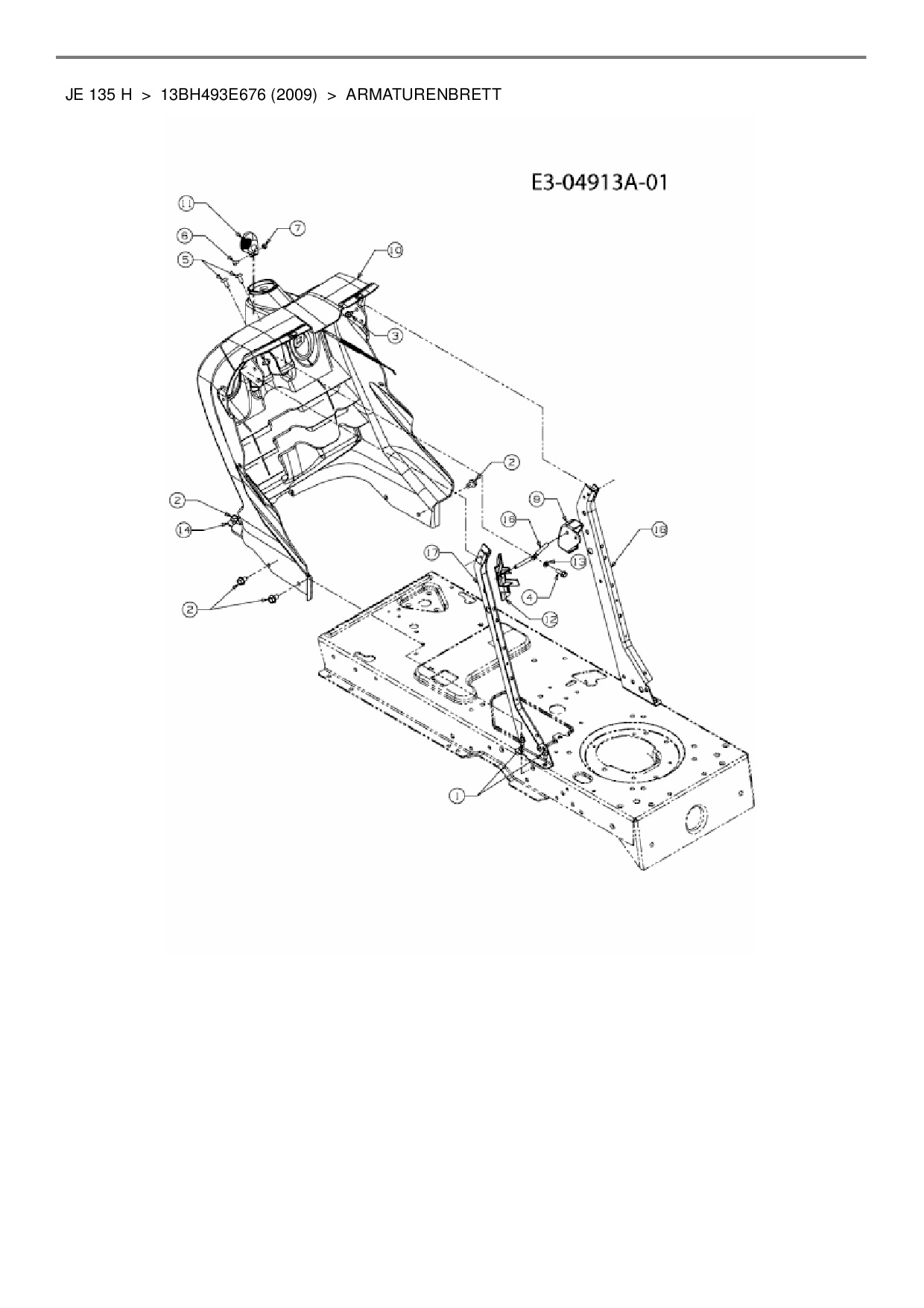 Ersatzteile für Rasentraktor MTD JE 135 H aus der Zeichnung Armaturenbrett: